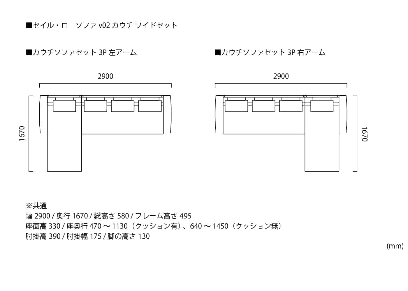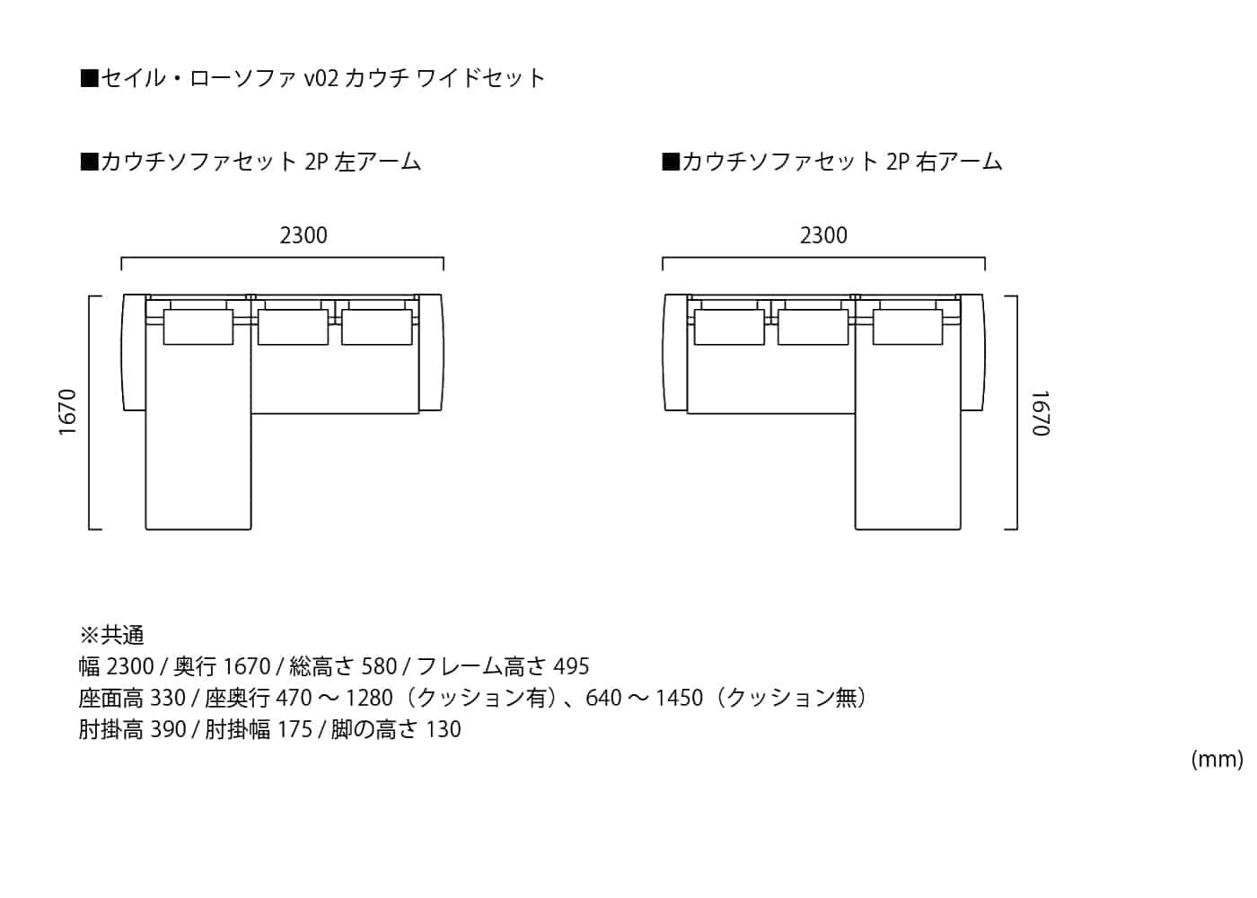 2人掛け 右アームカウチ ワイド 左アーム