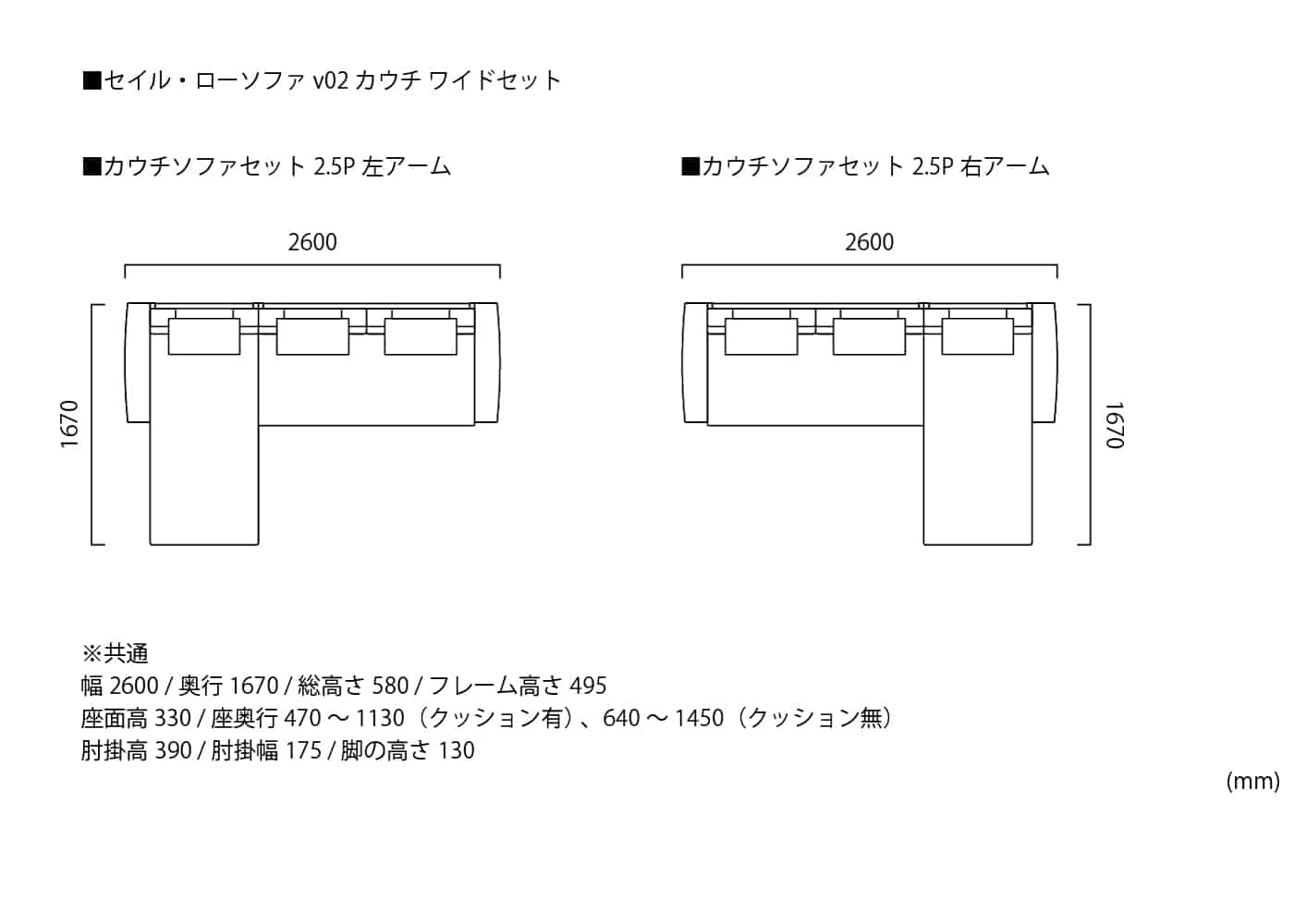 2.5人掛け 右アーム ・ カウチ ワイド 左アーム