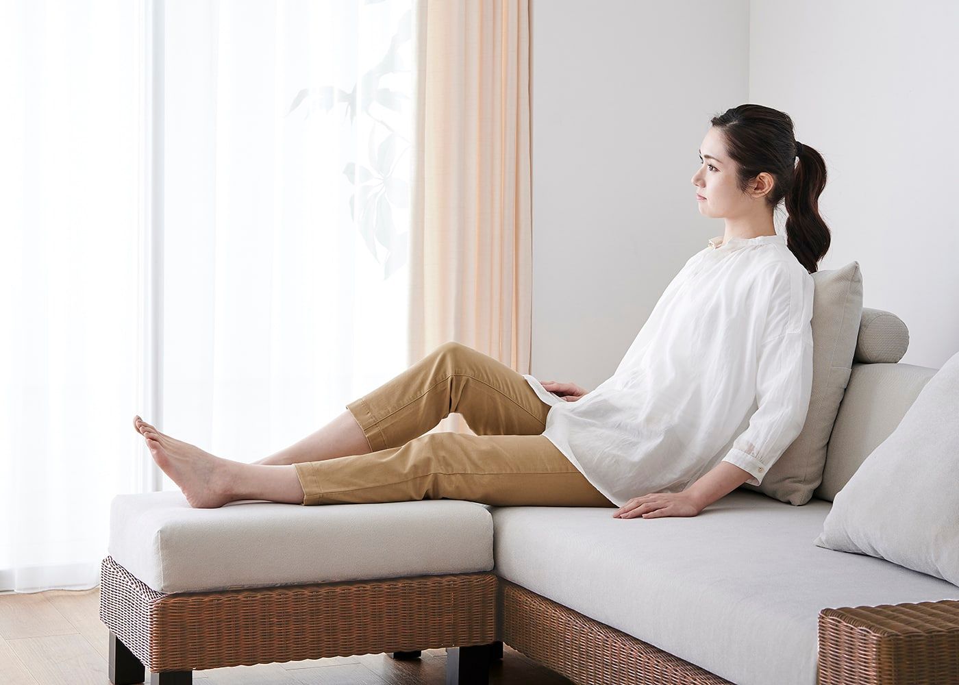 「日本人らしい床に近い暮らし」をテーマにデザインされたロースタイルのソファです。座面の高さは通常のソファより低めの330mmに設定しています。お子さまがいるご家庭や、床に座って過ごすことが多い方にもソファの暮らしを取り入れやすいロータイプのソファです。