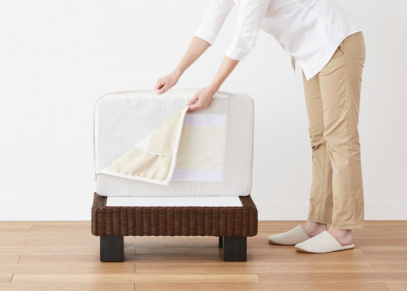座面のクッションはファスナー式で、カバーの取り外し・交換が可能。ご自宅でもカバーの洗濯ができ、メンテナンス性に優れたソファです。≫【特集】安心の充実したメンテナンス