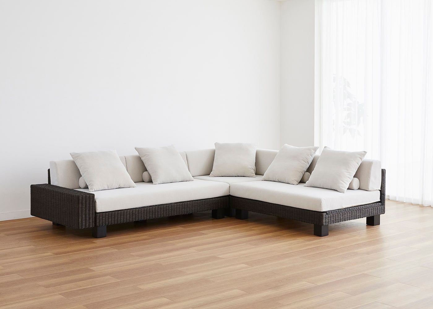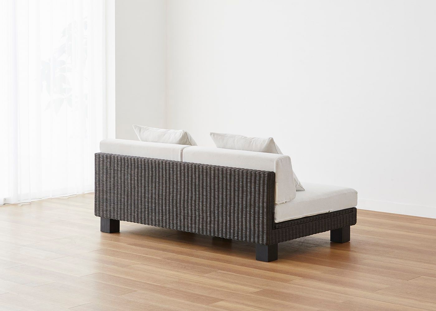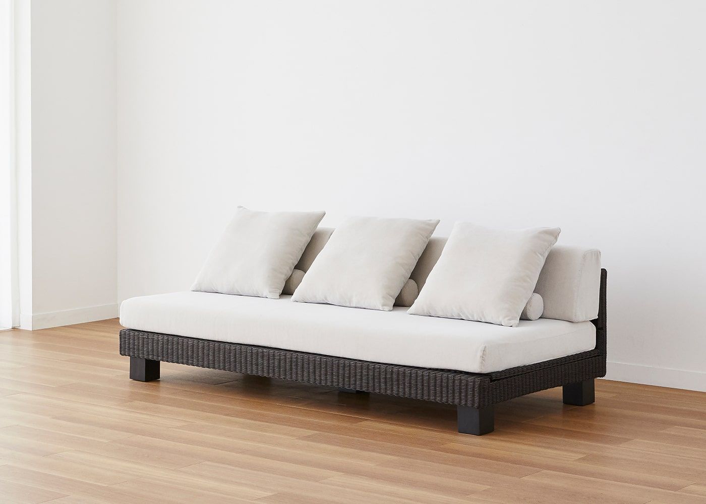 ベンチソファはアームレスの開放的なデザインが魅力です。アームのあるソファと同じ座面幅を確保しつつ、限られた空間でもレイアウトしやすくコンパクトに使えます。