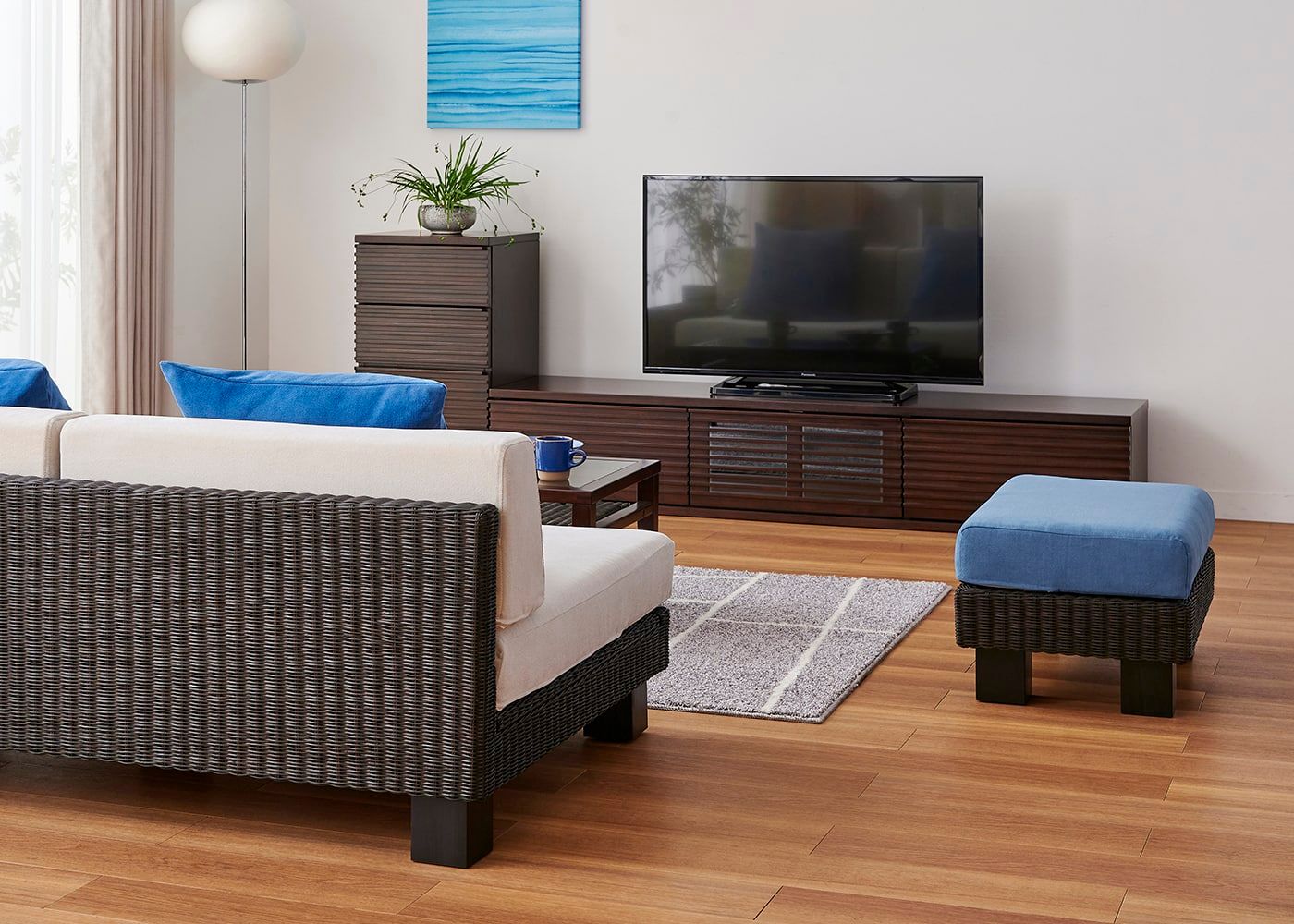 高さを抑えたロースタイルのソファは圧迫感が少なく、自然と目線が奥へと広がります。ローソファには空間を広く見せる効果があるため、お部屋を開放的に見せたい方におすすめです。