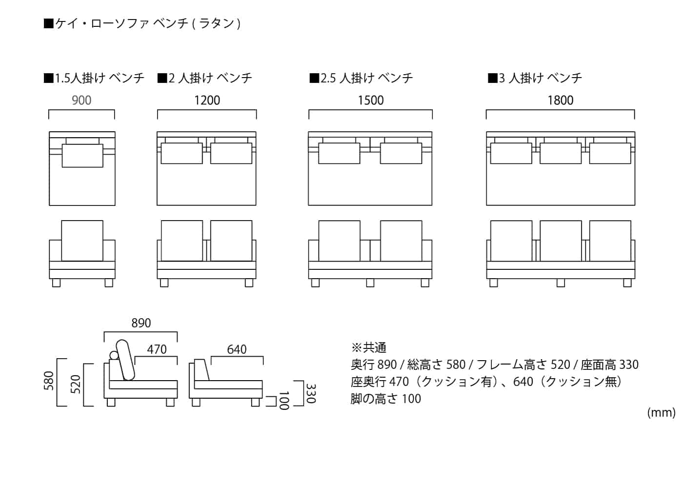 ケイ・ローソファ ベンチ (ラタン)
