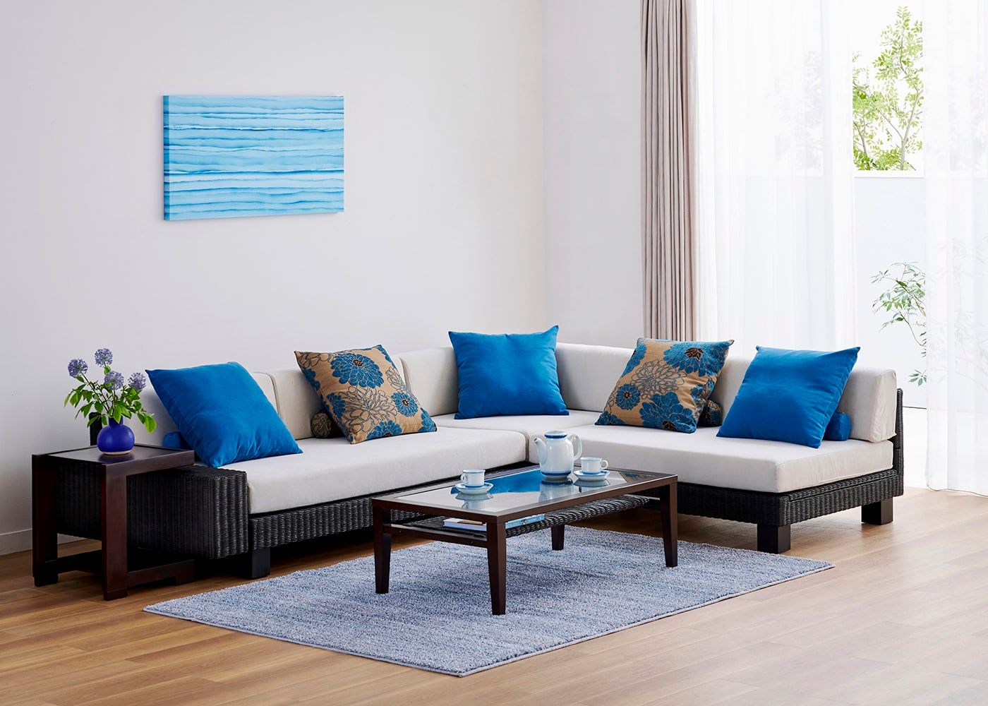 クッションに色を加えるだけでもアクセントとなり、お部屋の印象を大きく変えてくれます。リゾートの風と自然を感じるa.flatスタイルカラーの中から、あなただけの組み合わせをお楽しみください。(別売、受注生産)