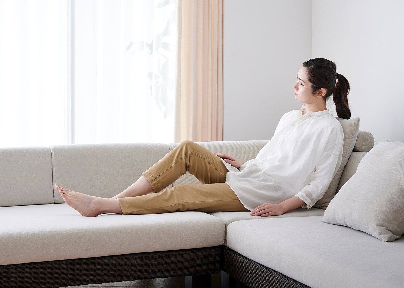 a.flatのソファはカバーの着せ替えができるのが魅力。約100色のファブリックから素材や色を選んで、あなただけのカラーコーディネートをお楽しみください。(別売、受注生産)