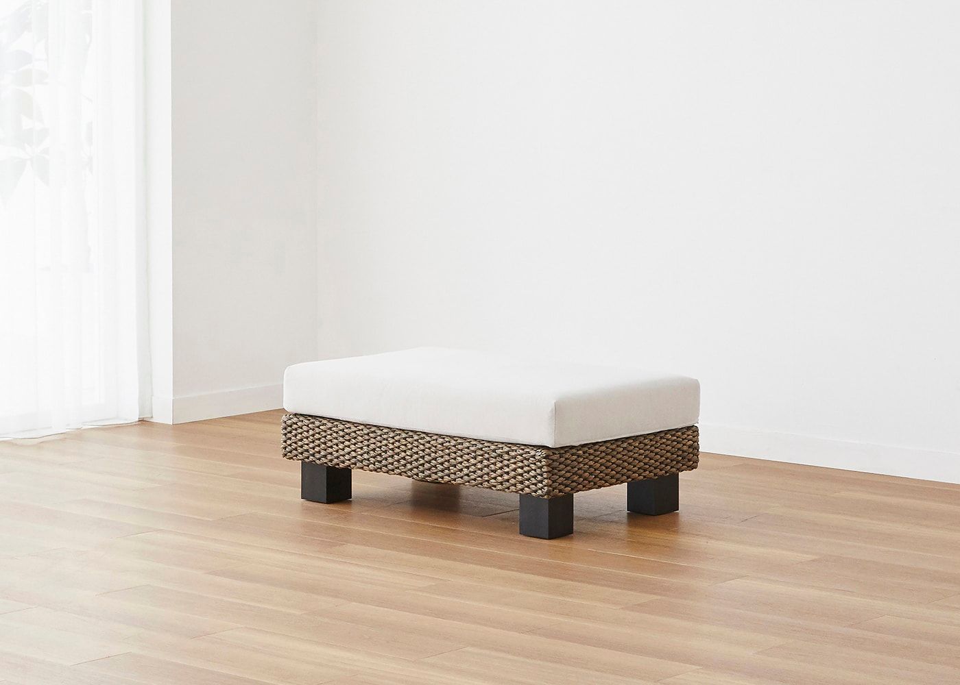 部屋を広く見せるためのフレームデザインやロー&ワイドなプロポーションにこだわりました。フレームにはアジアンリゾートな空間を演出しやすい、自然素材のヒヤシンスをしっかりと編み込んでいます。