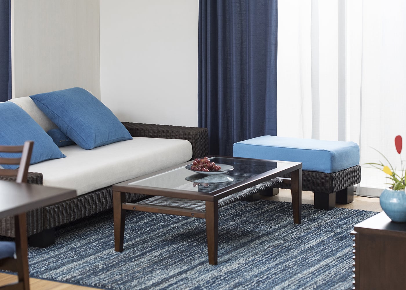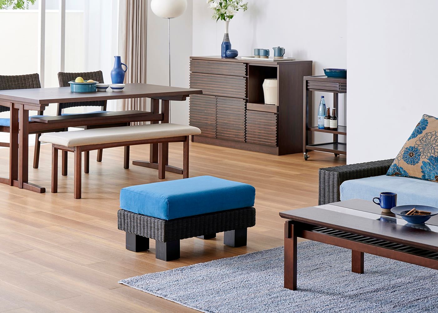 リビングダイニングで家族やゲストと過ごす際、ソファ横に置くことでスツール代わりに。弾力性のある座面が腰をしっかり支え、脚乗せとしても使えるオットマンは、暮らしをより充実させてくれます。(写真のオットマンカバーは
