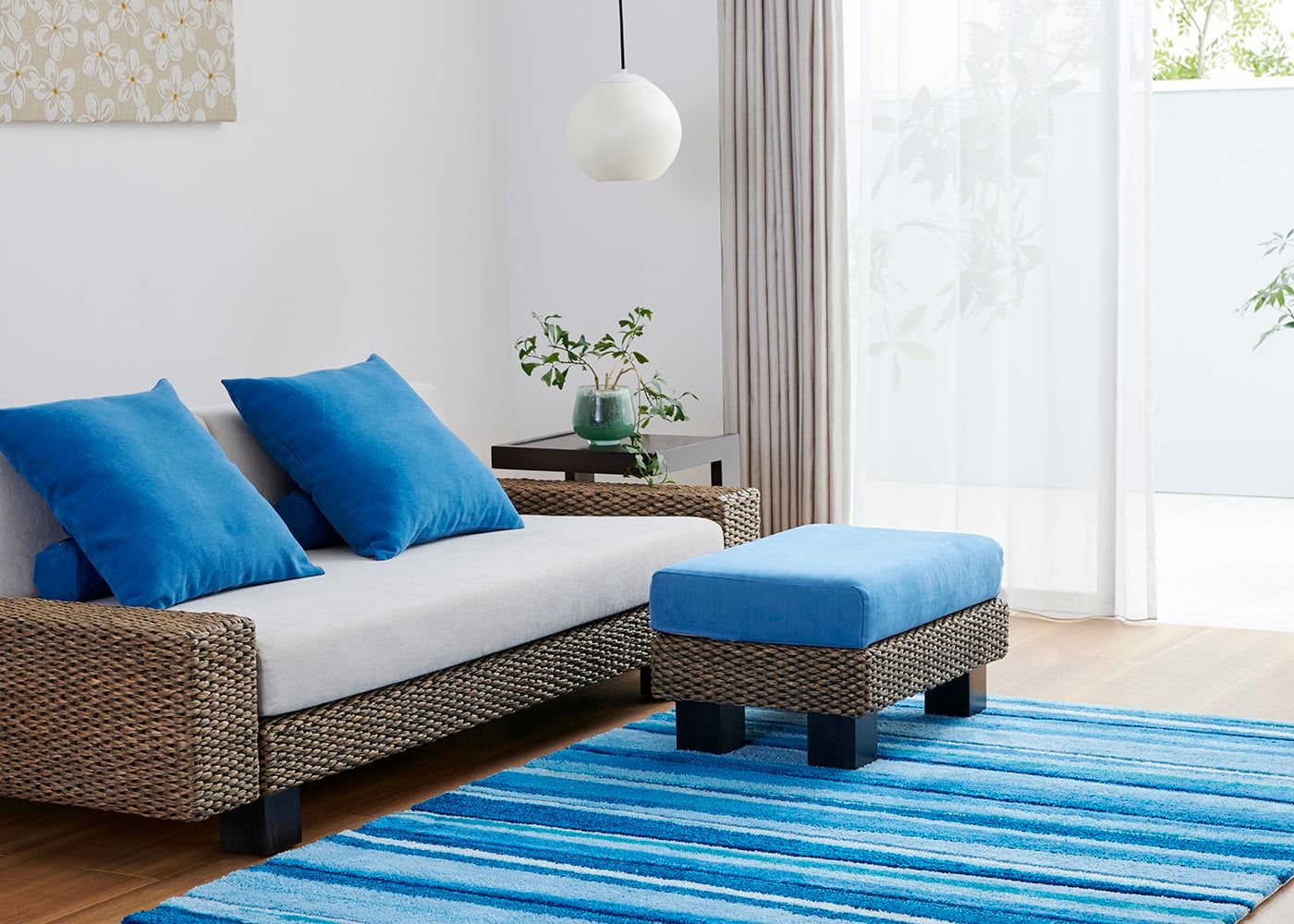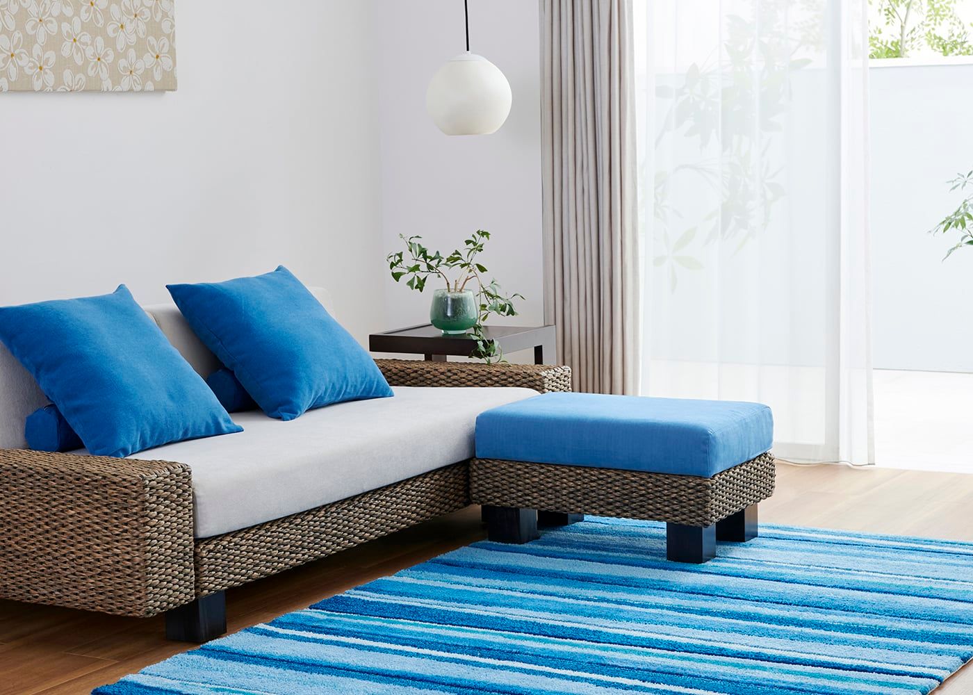 部屋を広く見せるためのフレームデザインや全体のプロポーションにこだわりました。フレームにはアジアンリゾートな空間を演出しやすい、自然素材のヒヤシンスをしっかりと編み込んでいます。