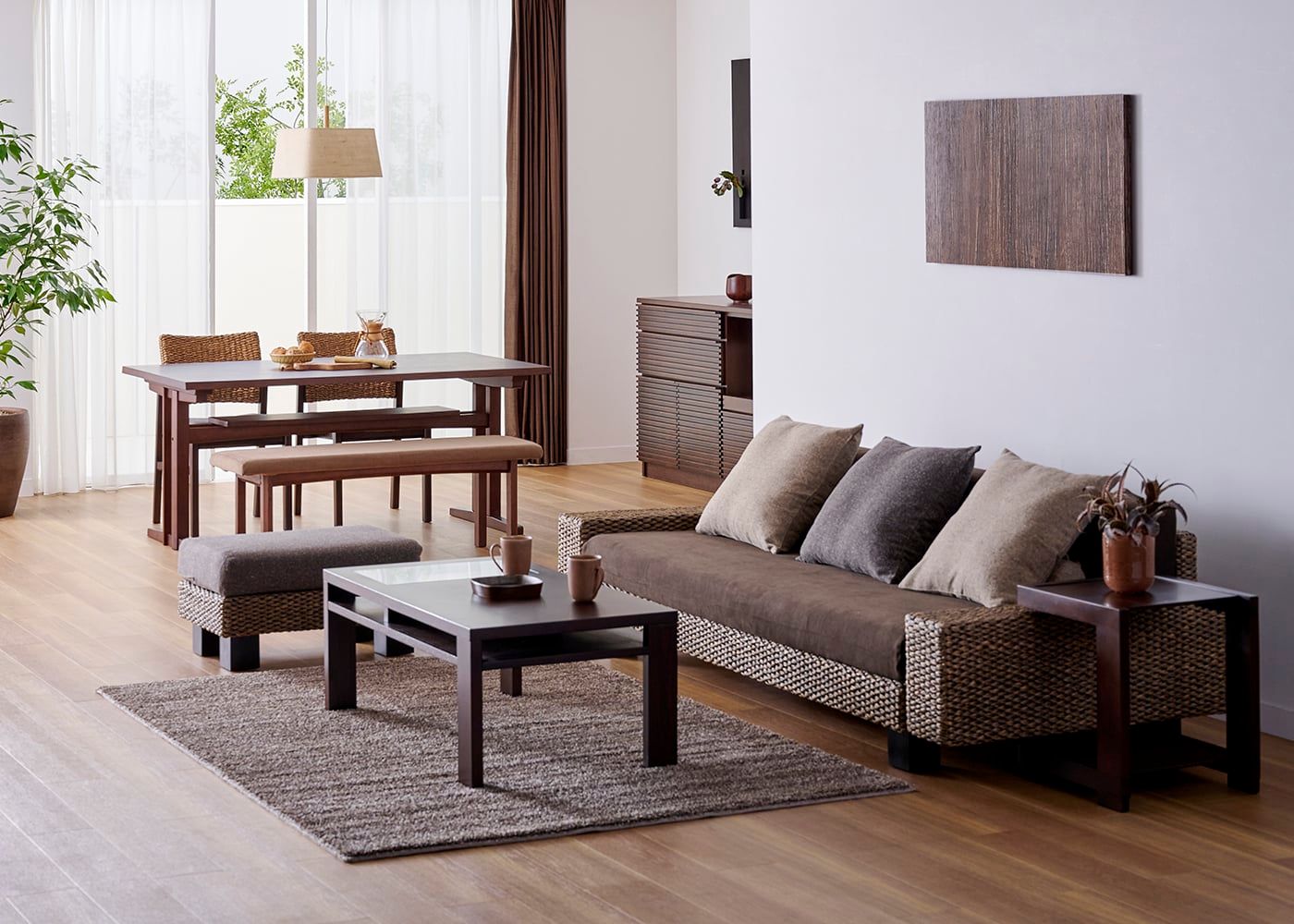 ヒヤシンスは、アジアンテイストを存分に味わえる独特な素材感が魅力です。素材感を最も引き出し、リゾート感あふれるブラウン色を採用しています。