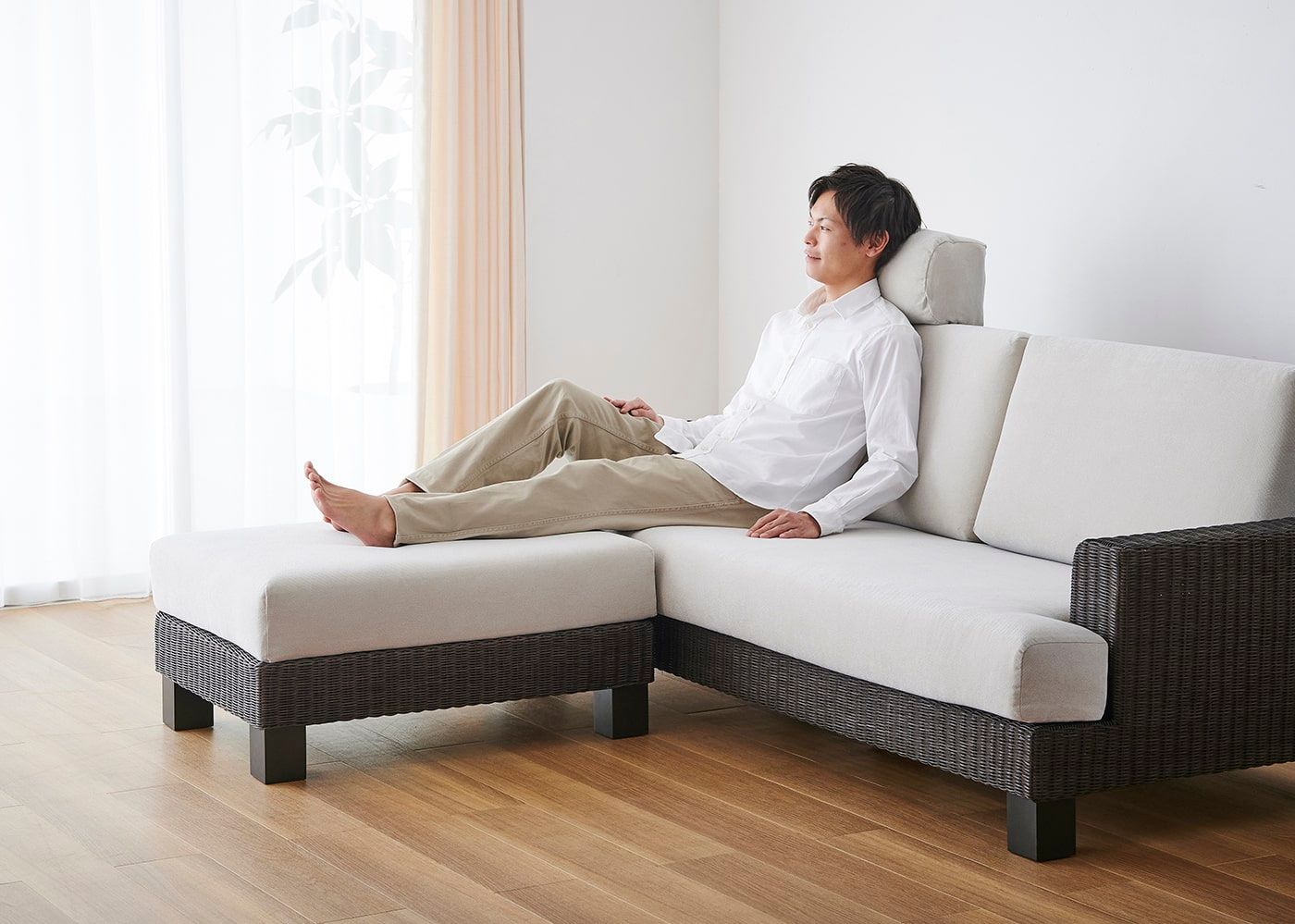 ヘッドレストとオットマンをプラスすれば、頭から足の先まで身体全体を支えてくれる、極上の座り心地を得られます。よりリラックスした姿勢でソファでの生活を楽しんでみては?