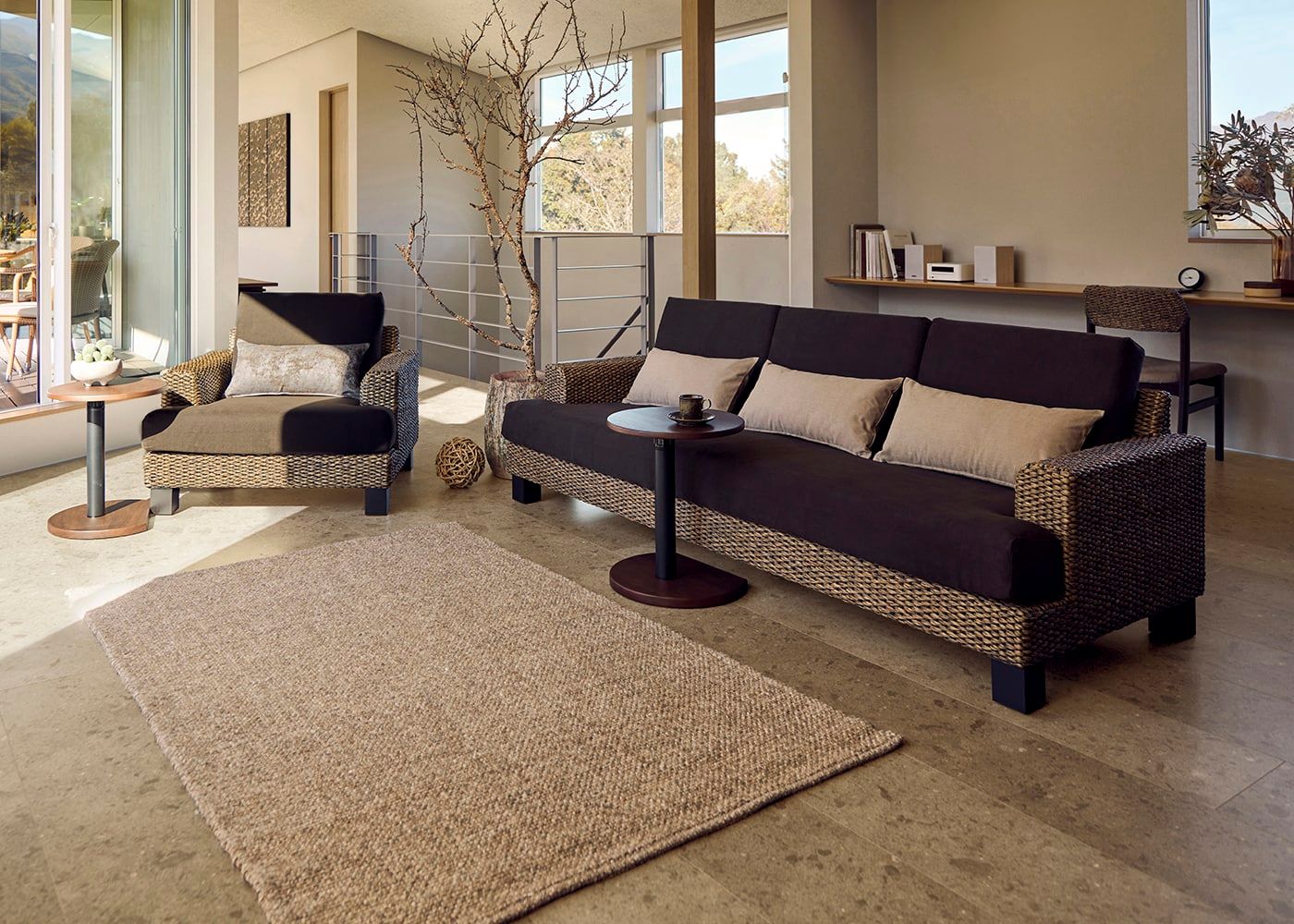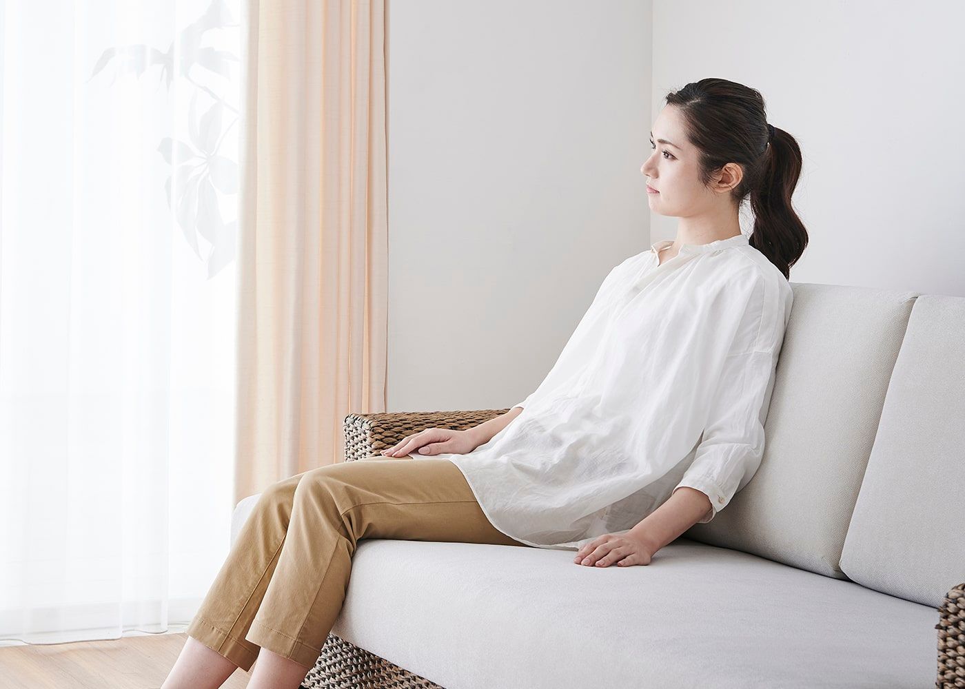 ソファ職人と何度も検証を重ね、座面と背もたれのベストなバランスを追及。人間工学に基づいて4度に傾斜した座面や、程よい硬さのクッション材によって、ゆったりリラックスできる「快適な座り心地」を実現しました。