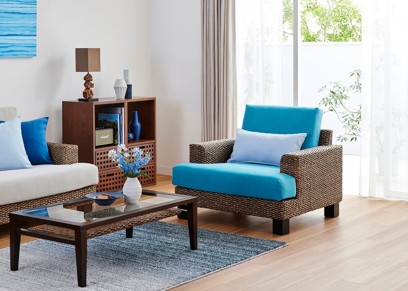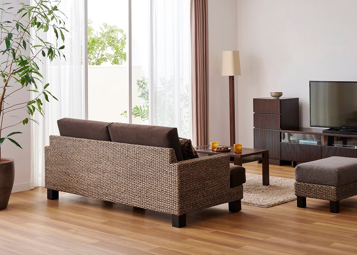 ヒヤシンスは、アジアンテイストを存分に味わえる独特な素材感が魅力です。素材感を最も引き出し、リゾート感あふれるブラウン色を採用しています。