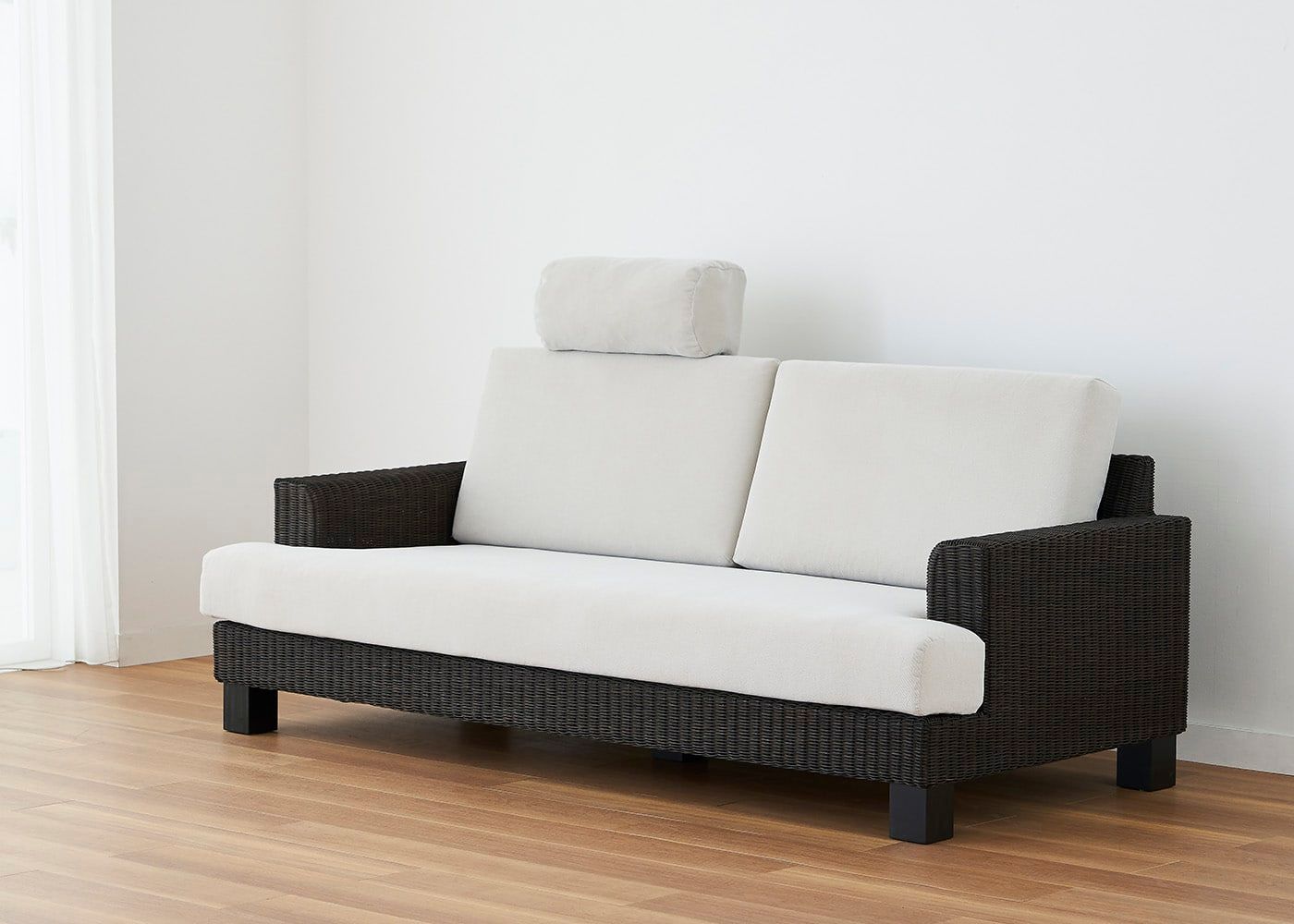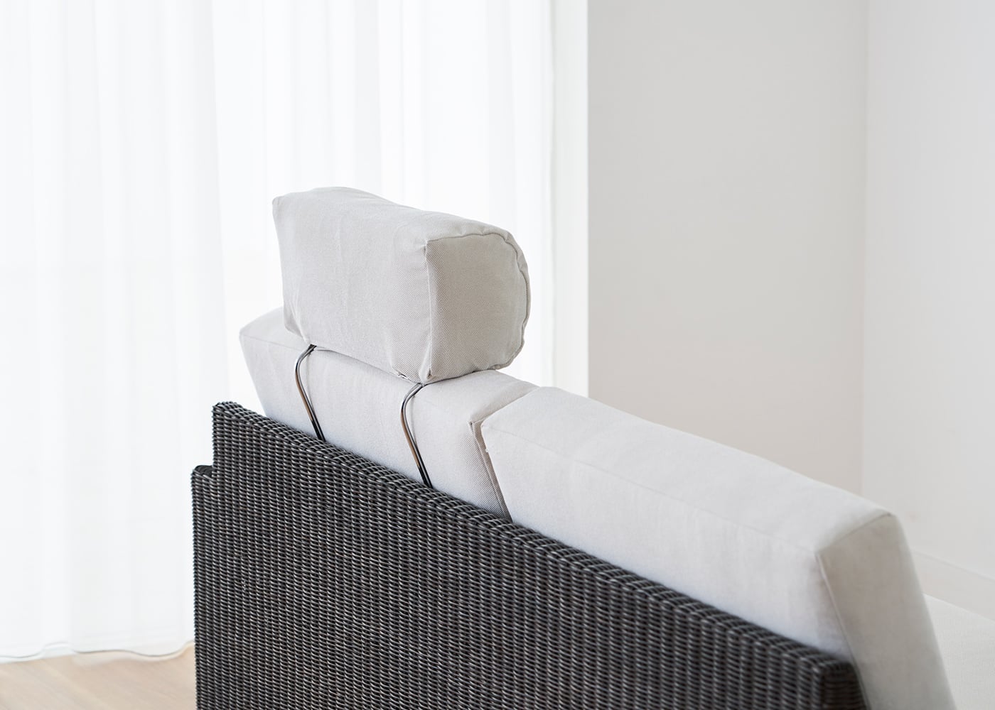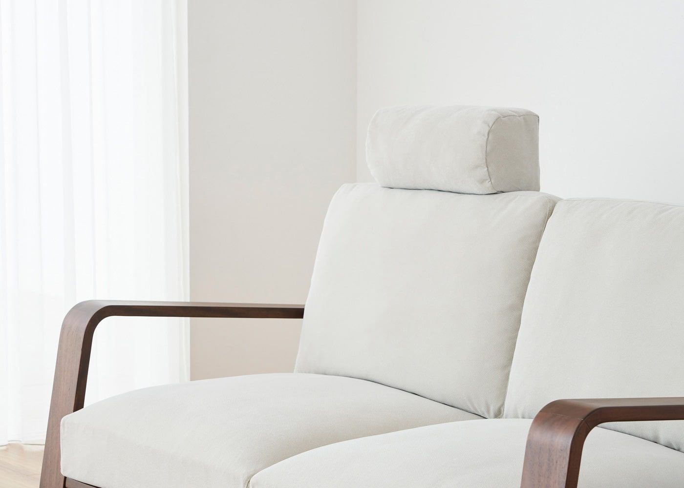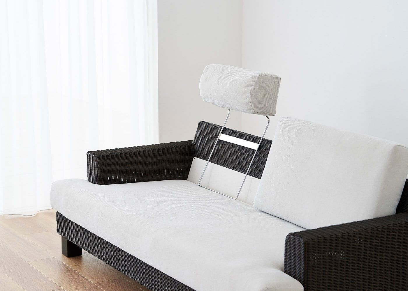 適度な弾力と心地良い安定感が魅力のソファ用ヘッドレスト。適度な弾力と心地良い安定感が魅力です。ソファ職人と何度も検証を重ね、ベストな角度とクッションの弾力を実現しました。(写真は