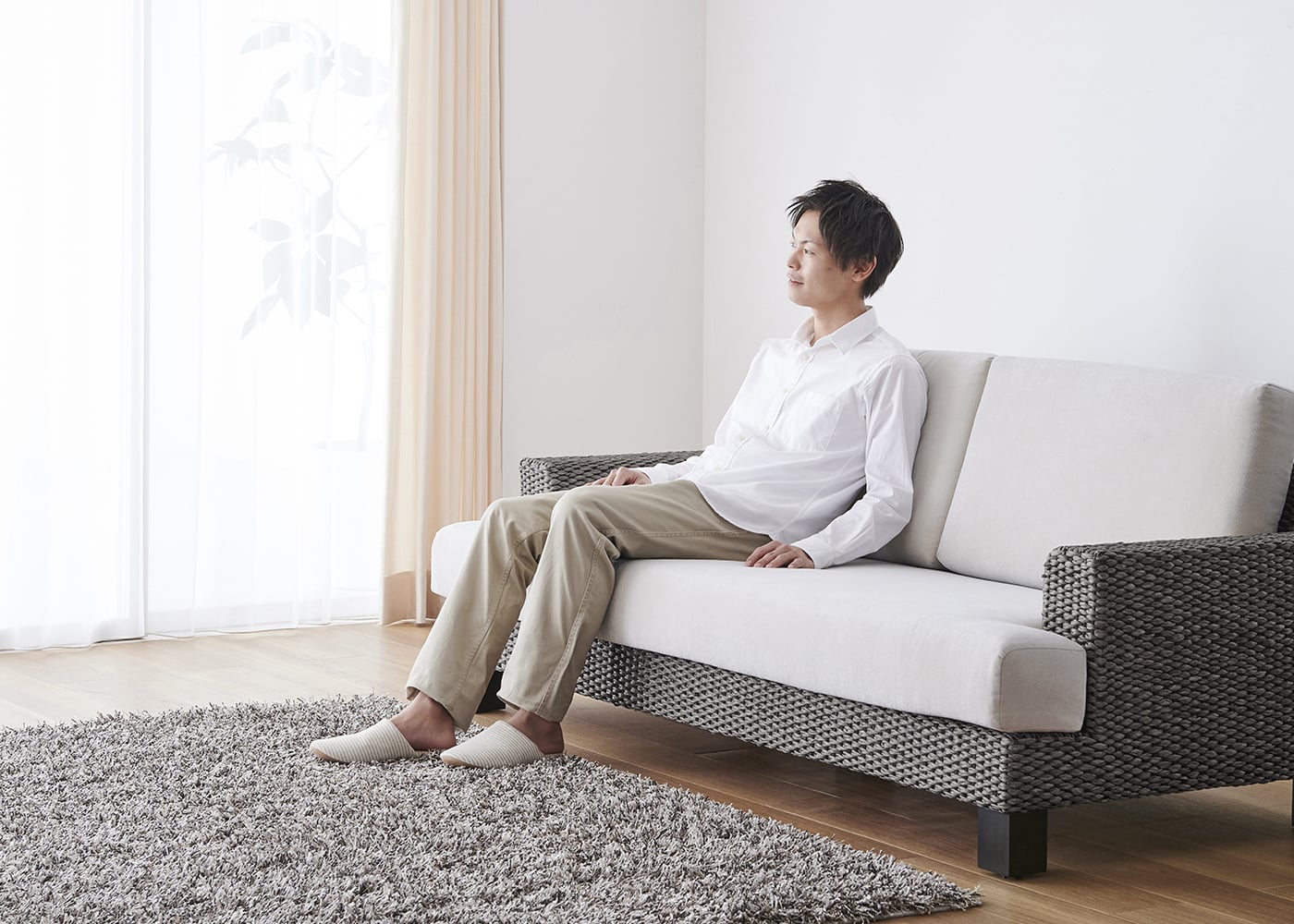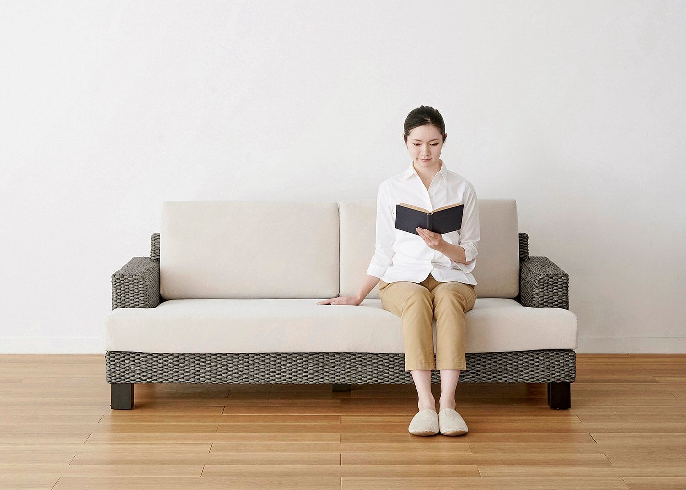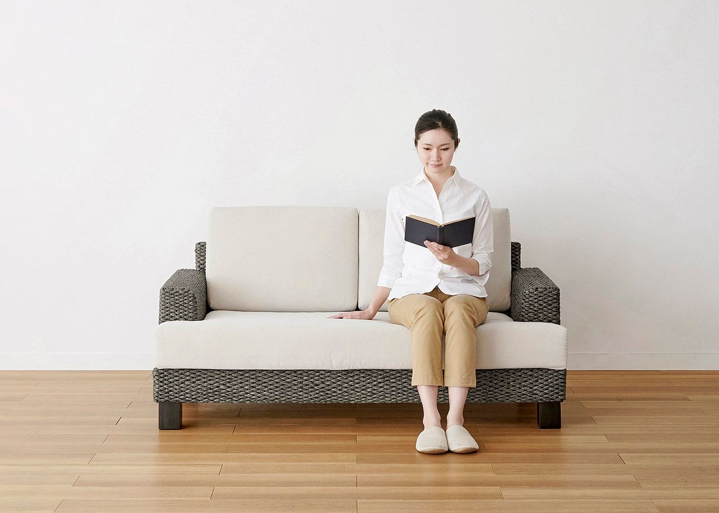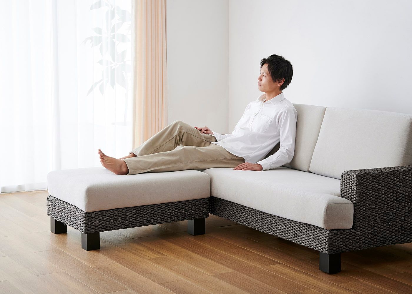シンプルなデザインと心地よい座り心地を両立させたシン・ソファ (ヒヤシンスDG)。温もりあるヒヤシンスを職人が丁寧に編み込み、抜け感のあるソファデザインを実現しました。≫スタンダードソファの特集ページはこちら