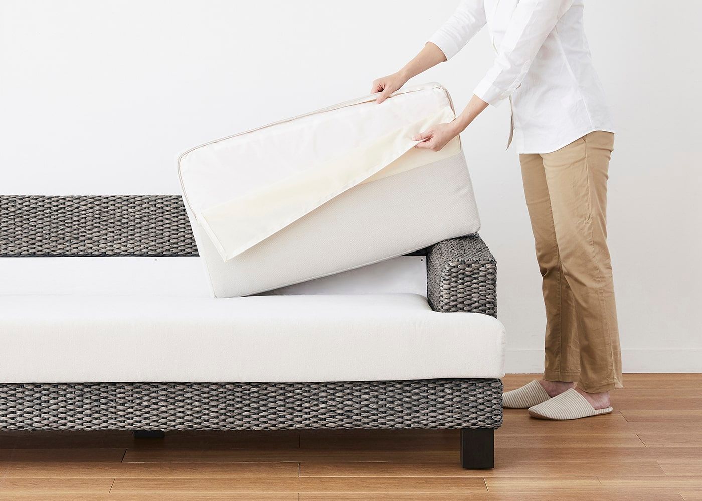 背もたれと座面のクッションのカバーはファスナー式で、カバーの取り外しや交換が可能です。ご自宅でカバーのお洗濯ができます。≫【特集】安心の充実したメンテナンス