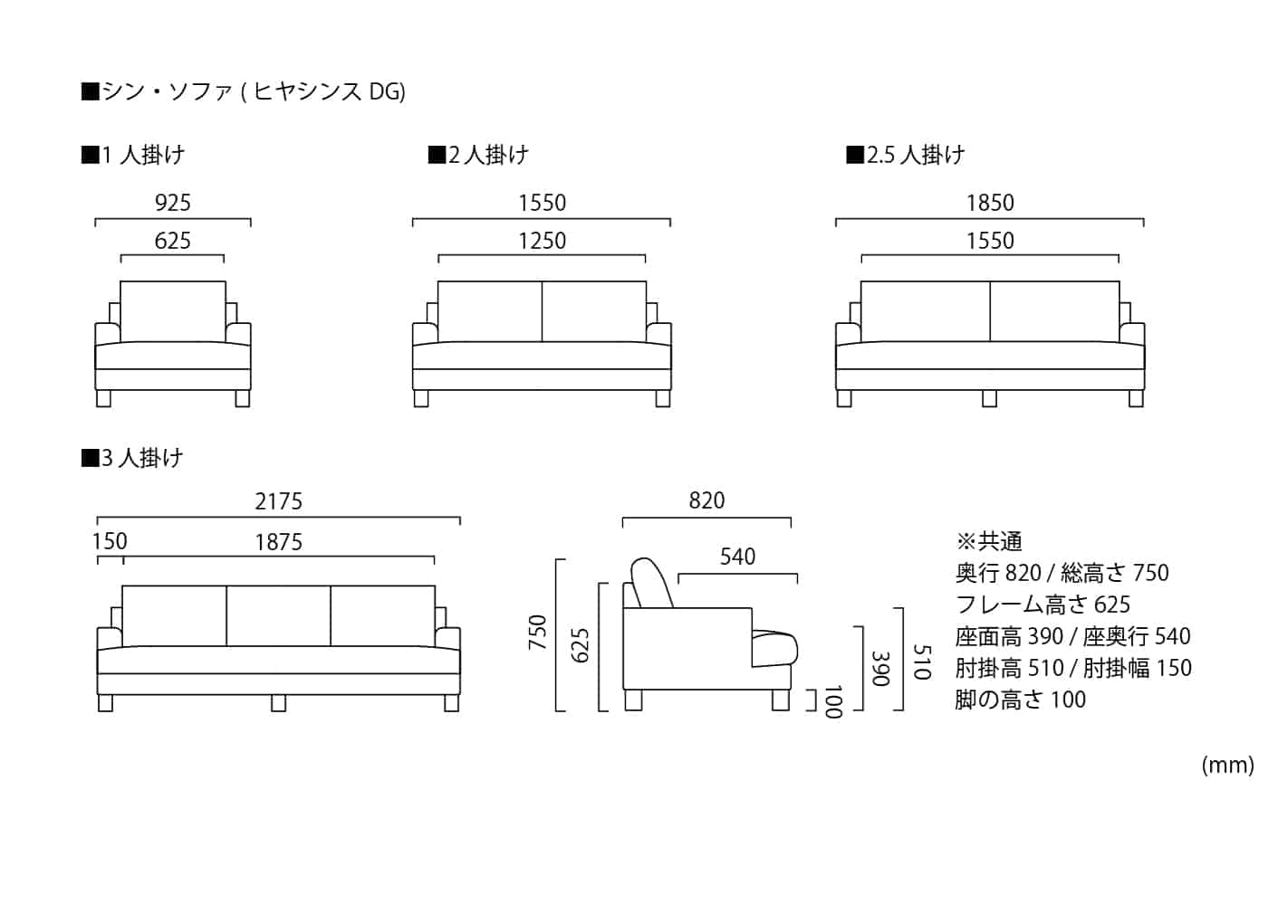 シン・ソファ (ヒヤシンスDG)はアームの奥行を短くして、その分だけ座面幅を広くしました。開放的な見た目に加えて、座った際にはゆとりを感じやすく、横になった際は脚を伸ばしやすいなどの便利さも併せ持ったソファです。(写真は2.5人掛け)