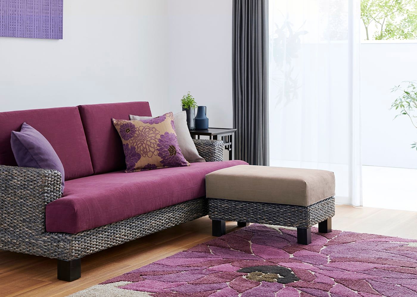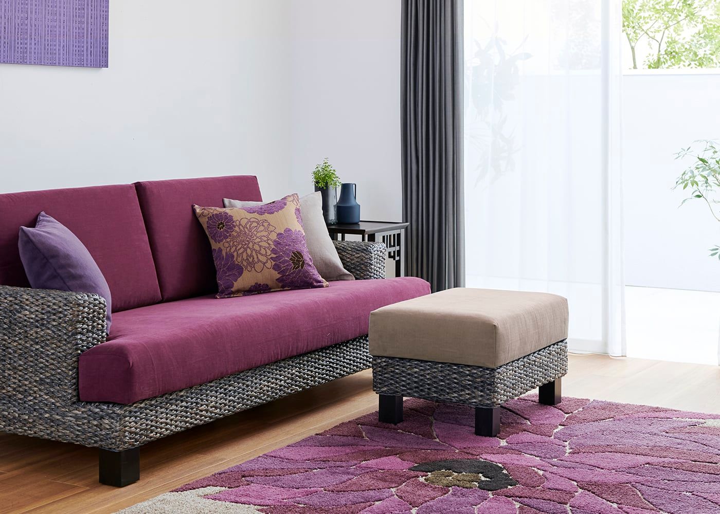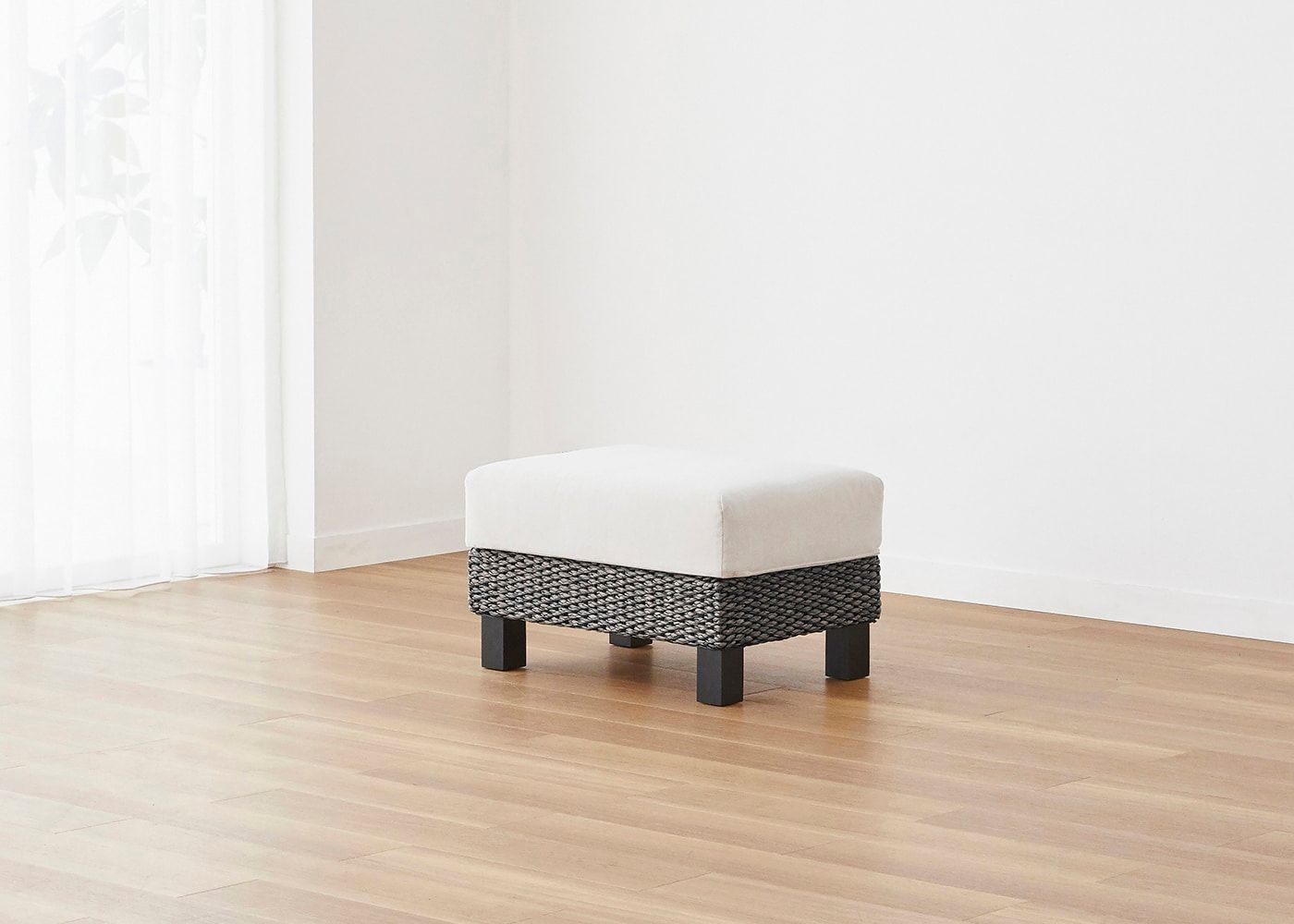 アジアの自然が育んだ天然のヒヤシンス素材を丁寧に編み込んだ、シン・ソファ オットマンv02 (ヒヤシンスDG)。素材感を活かしてシンプルなデザインに仕上げました。