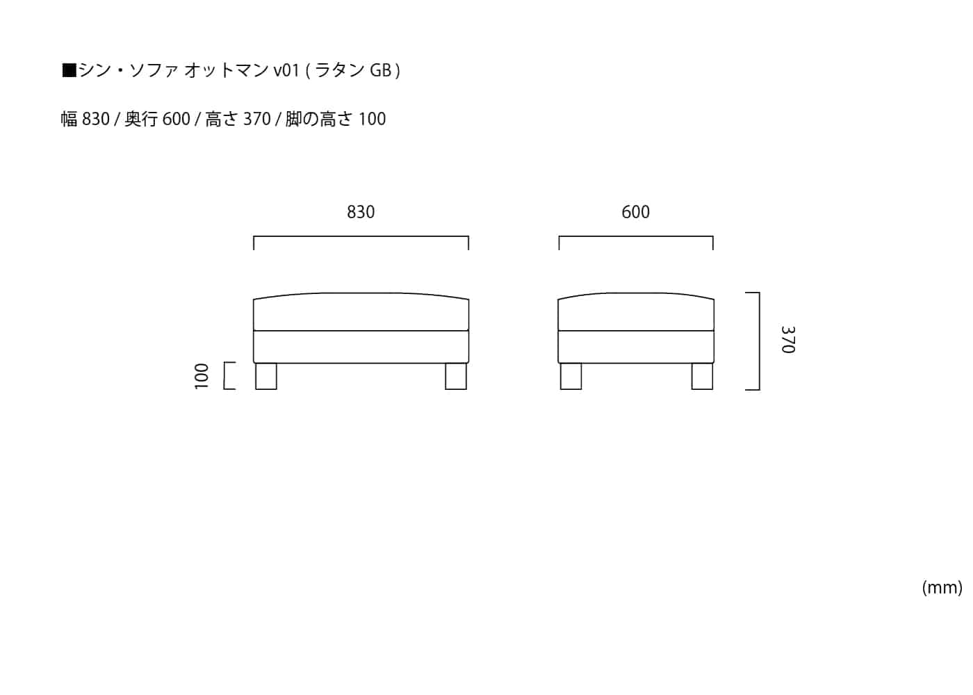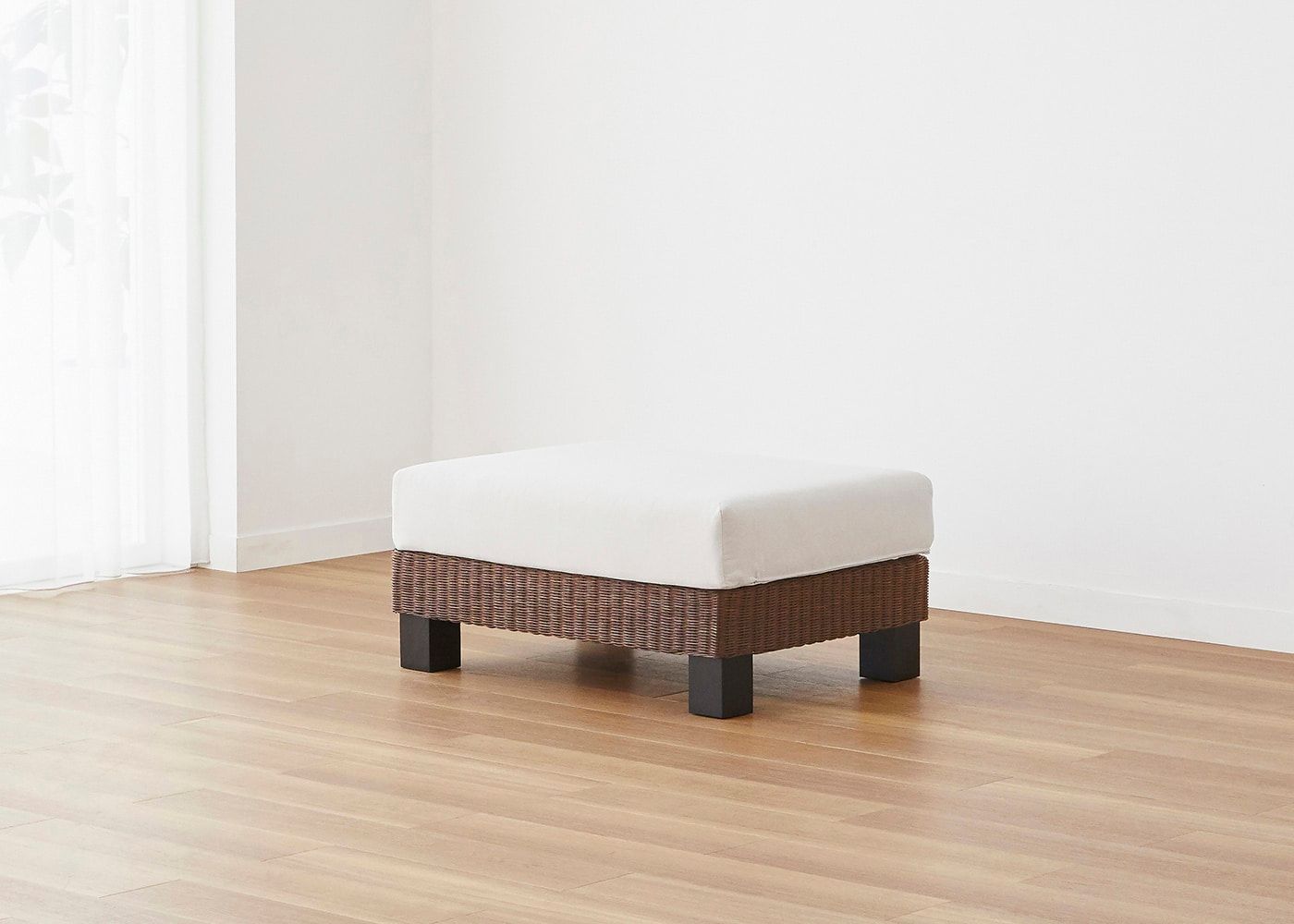 シン・ソファ (ラタンGB)専用のオットマンです。v01タイプはゆったり寛ぎやすいゆとりのあるサイズです。座面は程よい硬さのクッションで、脚を伸ばすとしっかりと支えてくれるため、長い時間でもリラックスしてソファライフを楽しめます。(写真は