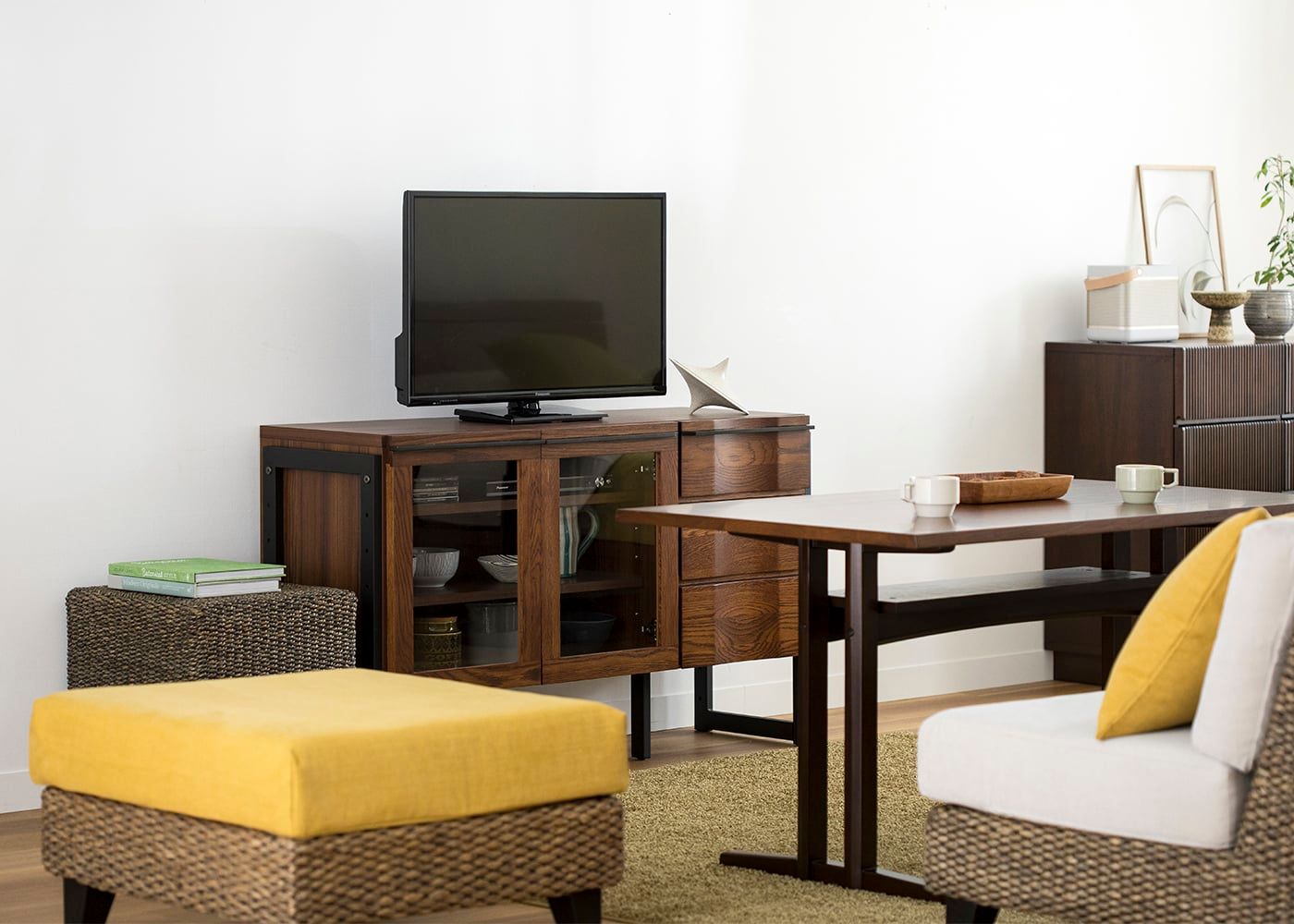 同シリーズのリビングシェルフと組み合わせることで収納力はもちろん、ワンランク上のリビングコーディネートが楽しめます。(写真は1240タイプと
