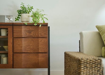 置くだけでリビングルームのちょっとしたスペースのアクセントに。リビング周りの小物を収納しつつ、天板は飾り棚として使うことができます。(写真は840タイプ)