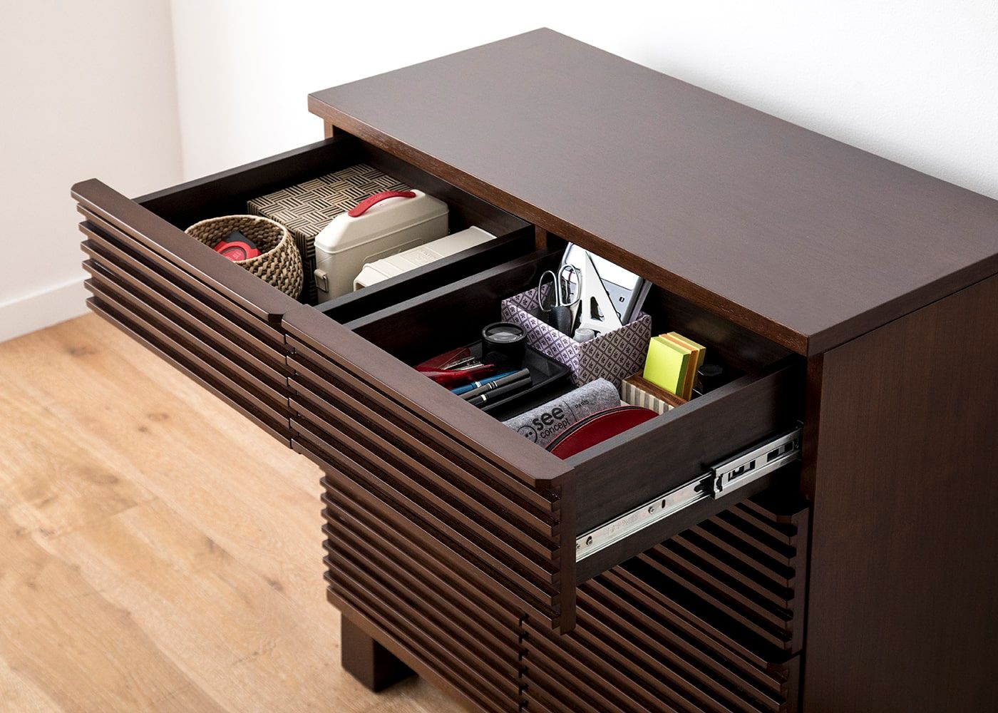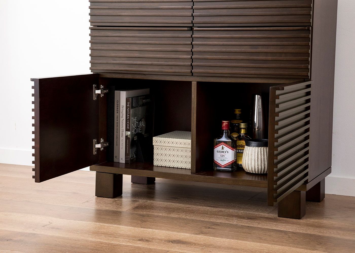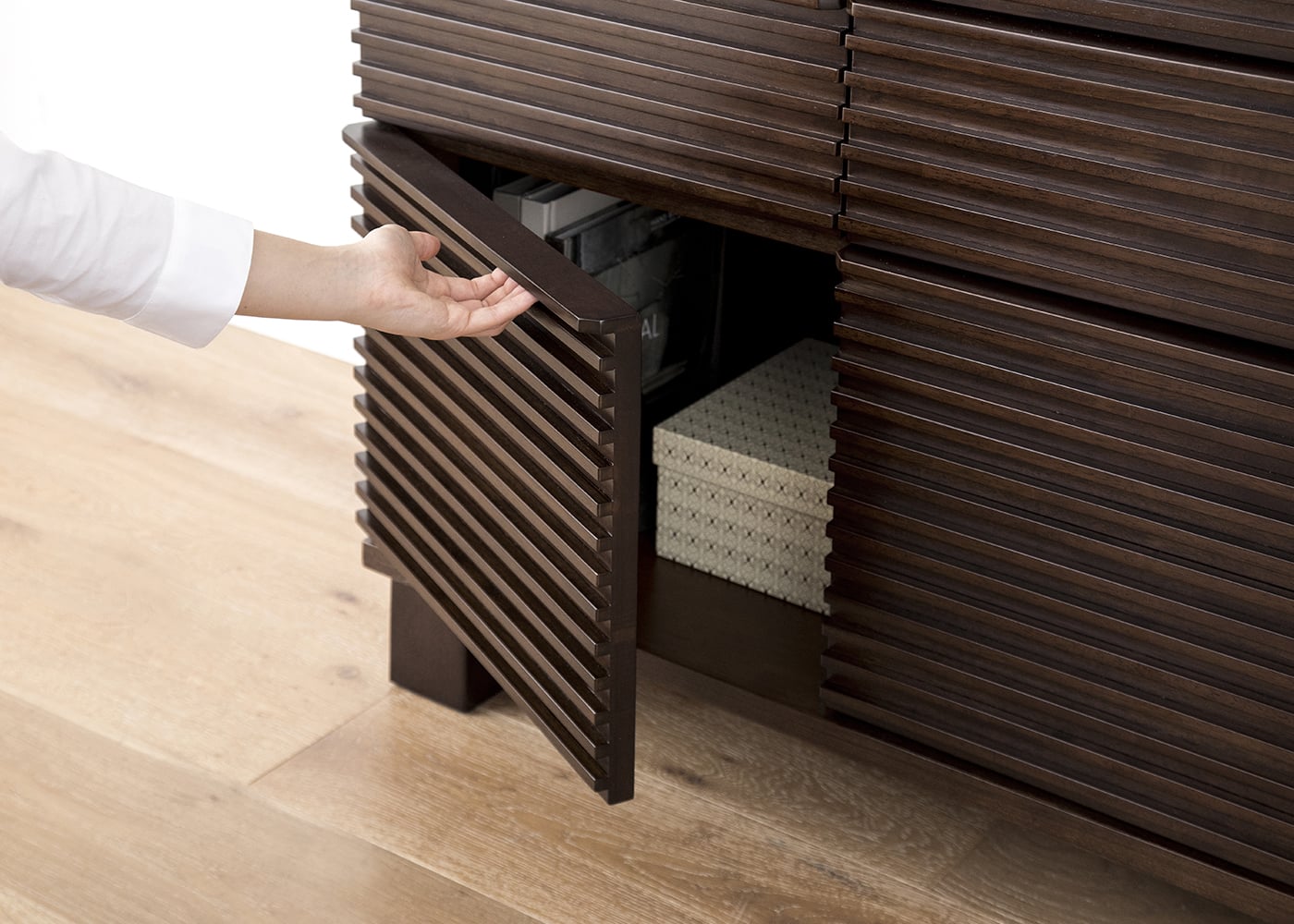 幅425mmと850mmのキャビネットのセットです。キャビネットを並べることで、どこまでも広がる波の様子を表現。ゆっくりと打ち寄せる波の穏やかさと整然さを体現したルーバーシリーズの魅力がより一層高まります。お部屋のサイズや使用用途に合わせて収納を増やしたい方や、シンプル且つ洗練された魅せる収納がほしい方にぴったりです。