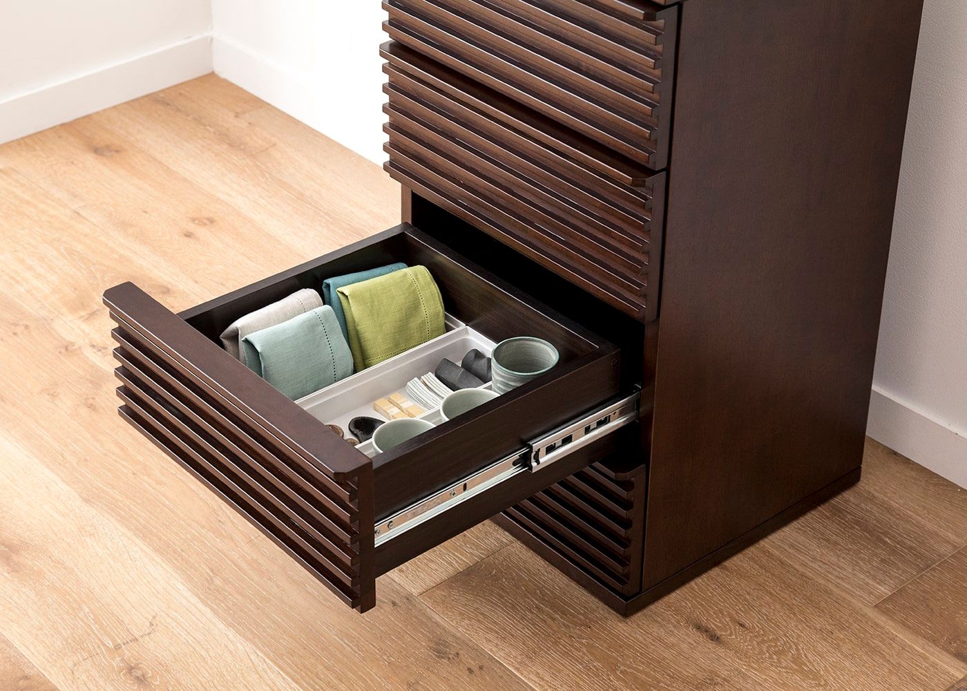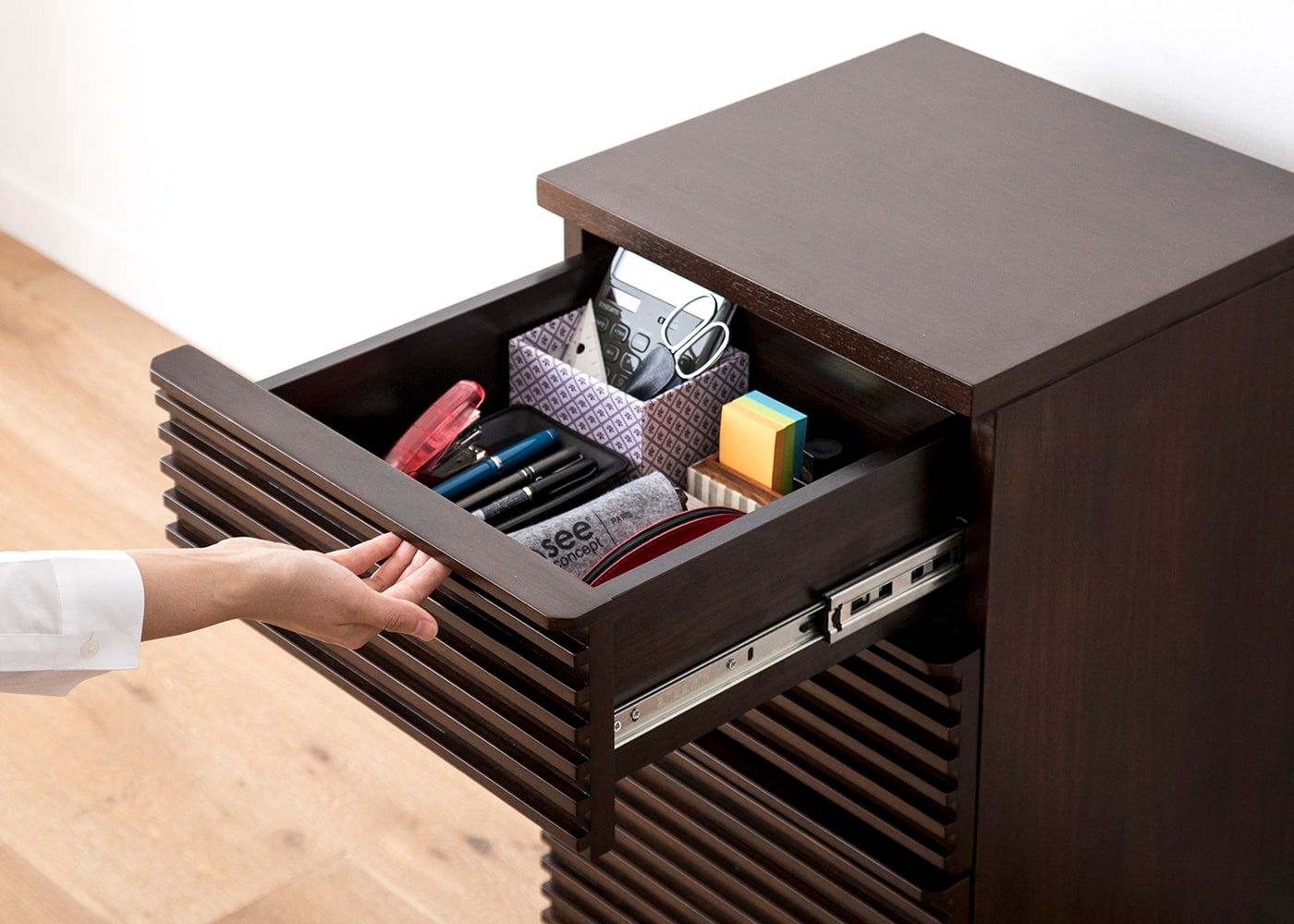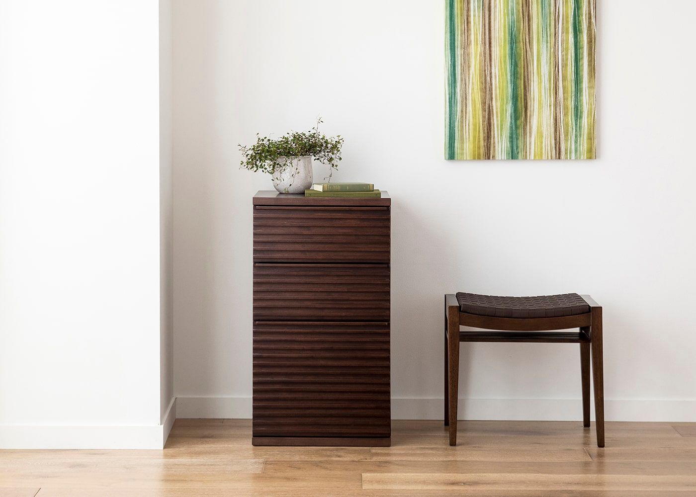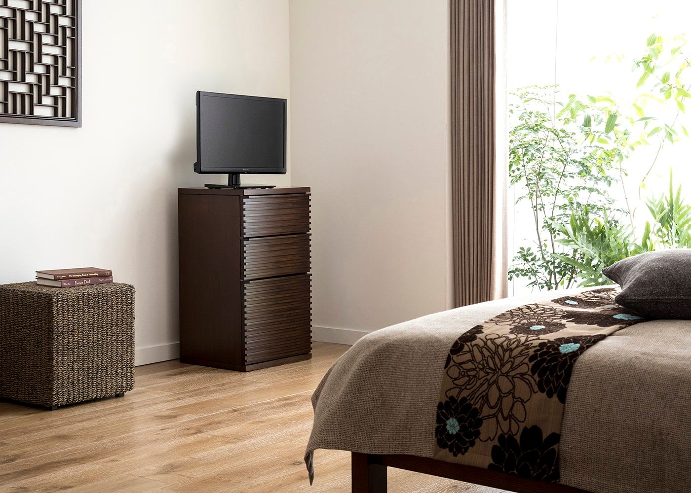 キャビネットやテレビボードの組み合わせ次第で、自分に合ったサイズやデザインの収納が作れます。はじめは単品で使っていても、将来お部屋が広くなった時には同シリーズの収納を追加して収納力が増やせるルーバーシリーズ。ライフスタイルに合わせて長く使い続けられる拡張性の高さが魅力です。(写真は一例です)