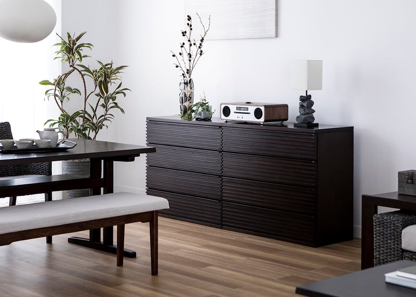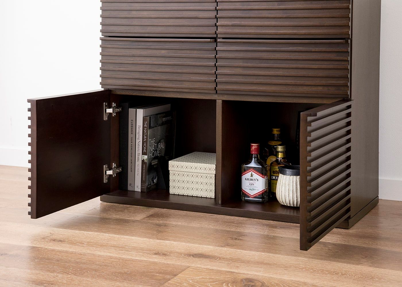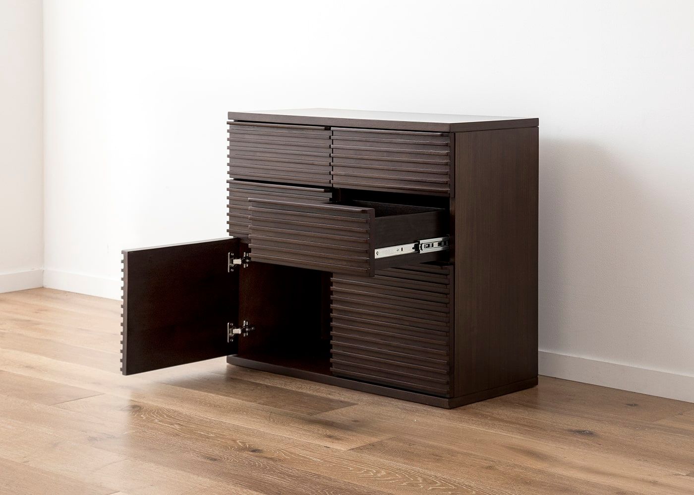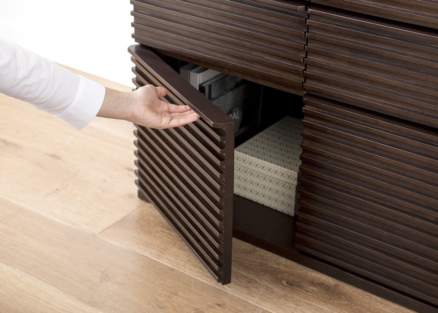 幅425mmと850mmのキャビネットのセットです。キャビネットを並べることで、どこまでも広がる波の様子を表現。ゆっくりと打ち寄せる波の穏やかさと整然さを体現したルーバーシリーズの魅力がより一層高まります。お部屋のサイズや使用用途に合わせて収納を増やしたい方や、シンプル且つ洗練された魅せる収納がほしい方にぴったりです。