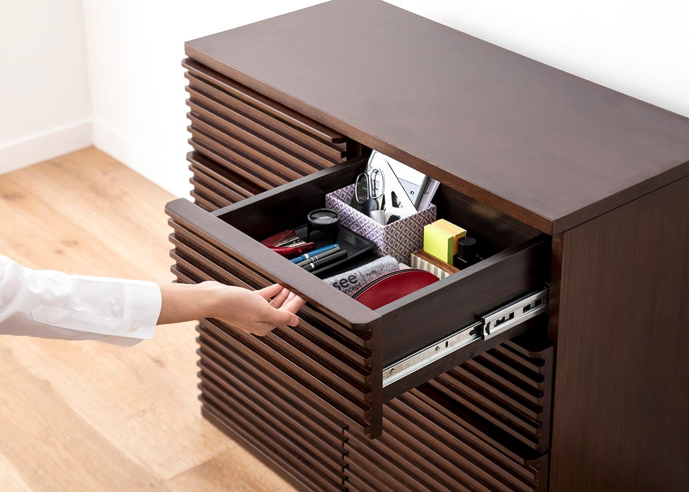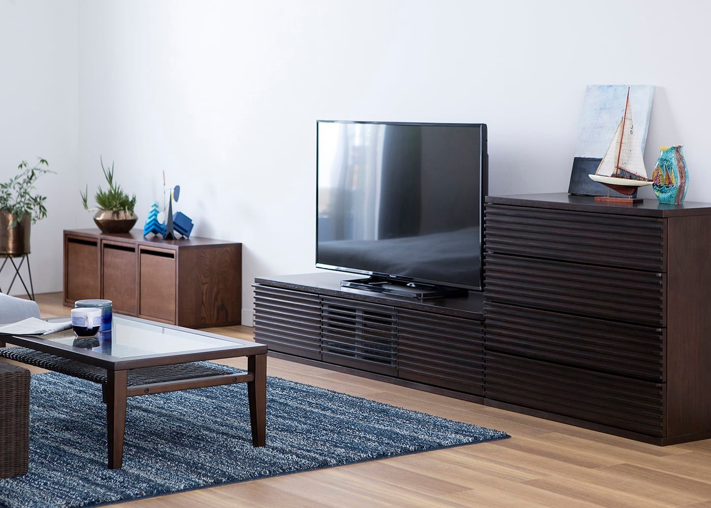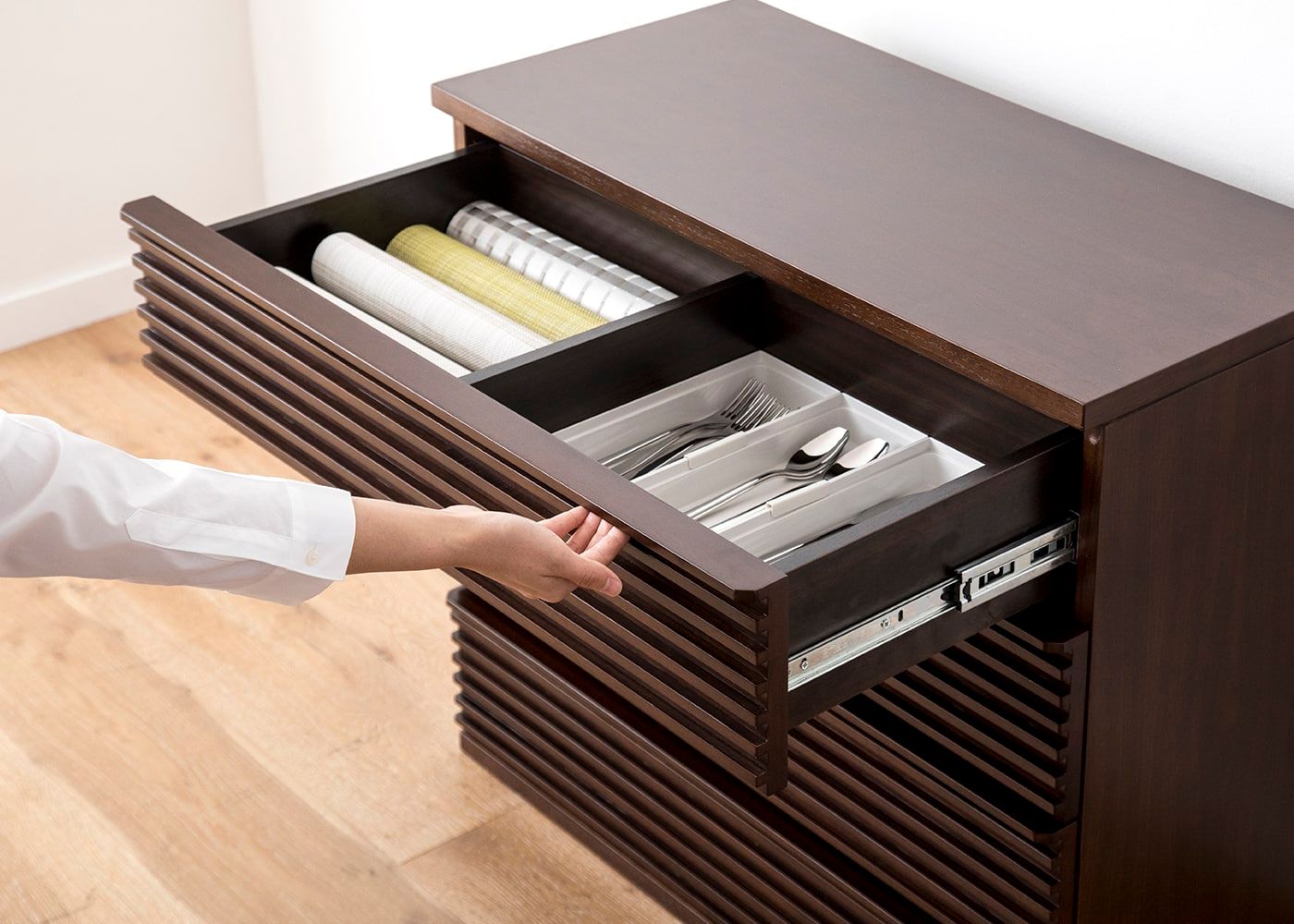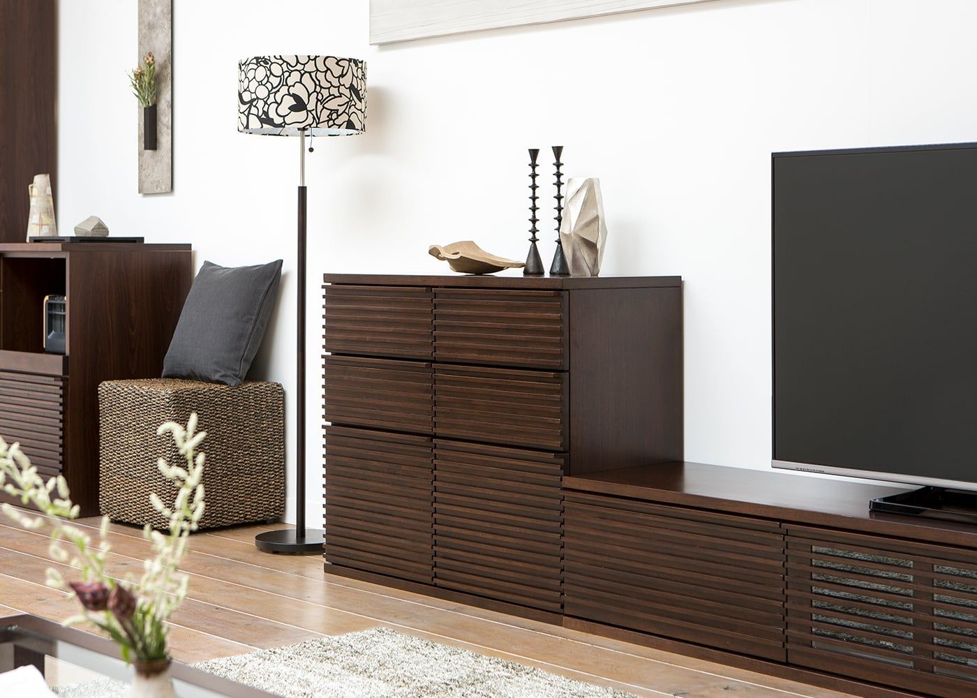 幅425mmと850mmのキャビネットのセットです。キャビネットを並べることで、どこまでも広がる波の様子を表現。ゆっくりと打ち寄せる波の穏やかさと整然さを体現したルーバーシリーズの魅力がより一層高まります。お部屋のサイズや使用用途に合わせて収納を増やしたい方や、シンプル且つ洗練された魅せる収納がほしい方にぴったりです。