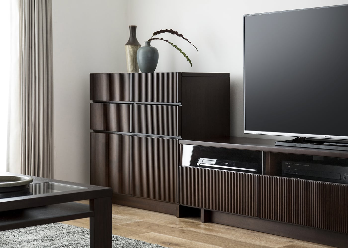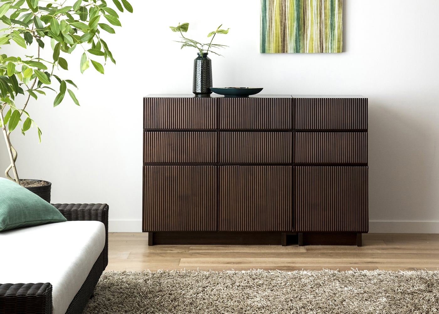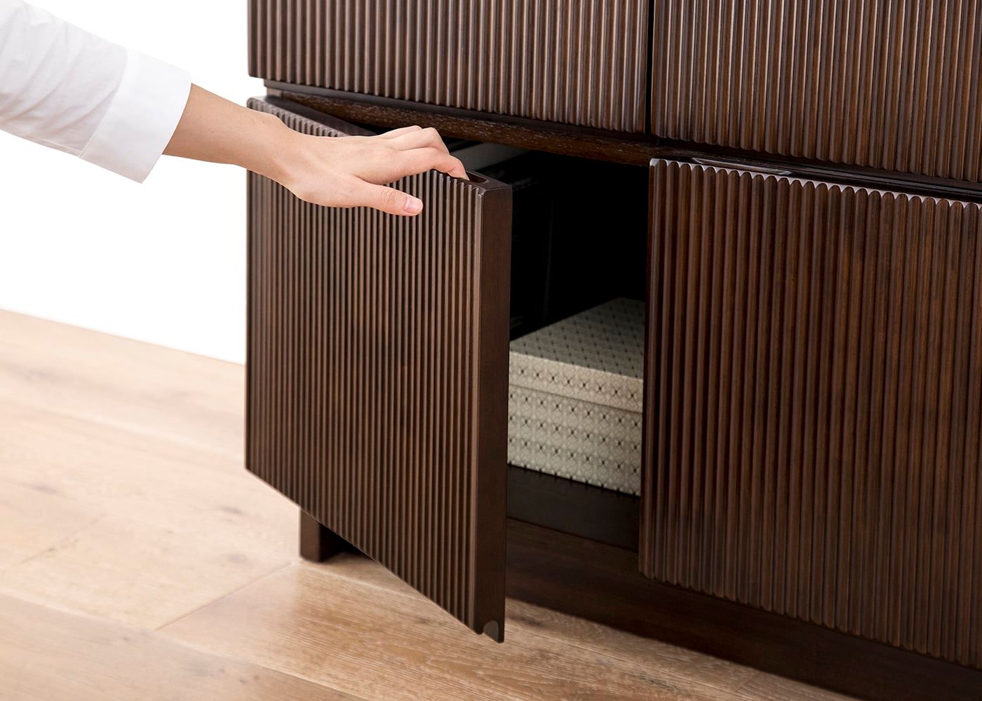 幅425mmと850mmのキャビネットのセットです。キャビネットを並べることで、大きな滝が流れ落ちる様子を表現。滝の繊細さと美しさを体現したレンシリーズの魅力がより一層高まります。お部屋のサイズや使用用途に合わせて収納を増やしたい方や、シンプルながらも繊細な意匠の魅せる収納がほしい方にぴったりです。