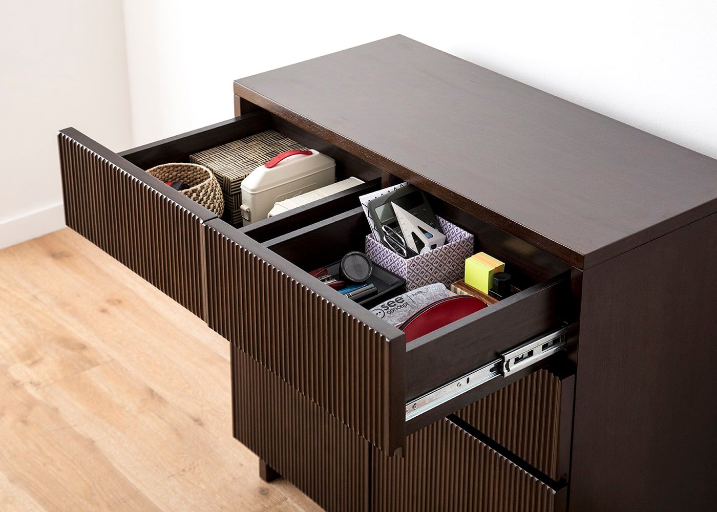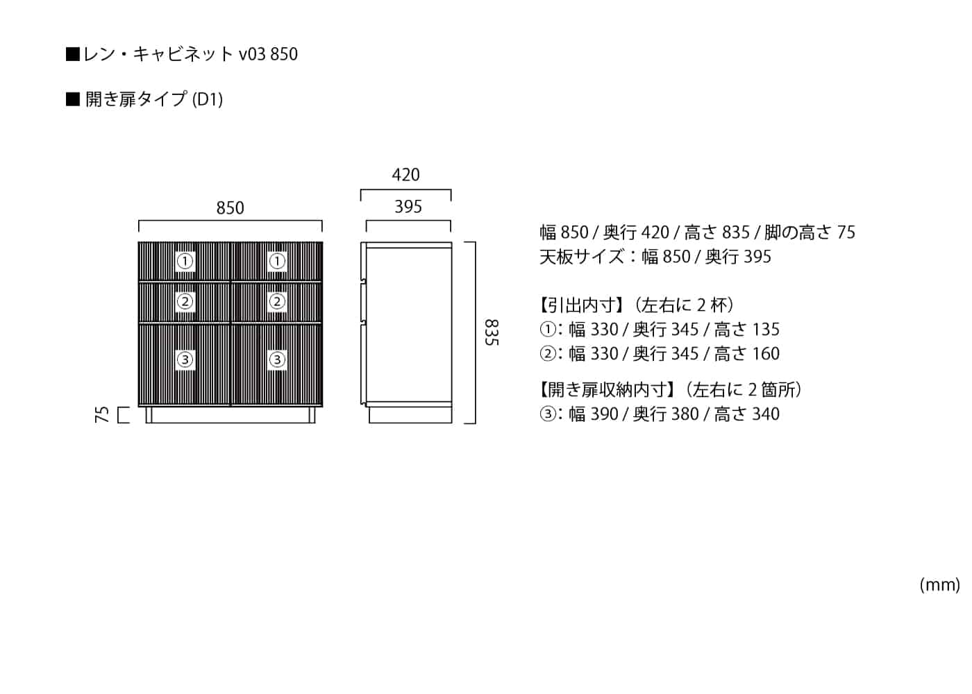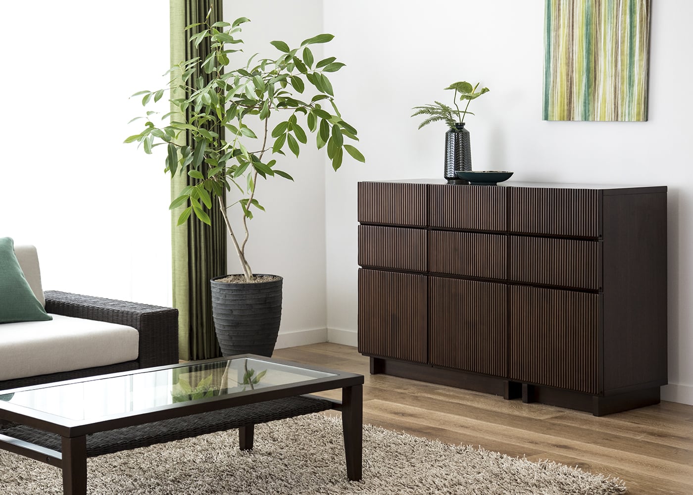 幅425mmと850mmのキャビネットのセットです。キャビネットを並べることで、大きな滝が流れ落ちる様子を表現。滝の繊細さと美しさを体現したレンシリーズの魅力がより一層高まります。お部屋のサイズや使用用途に合わせて収納を増やしたい方や、シンプルながらも繊細な意匠の魅せる収納がほしい方にぴったりです。