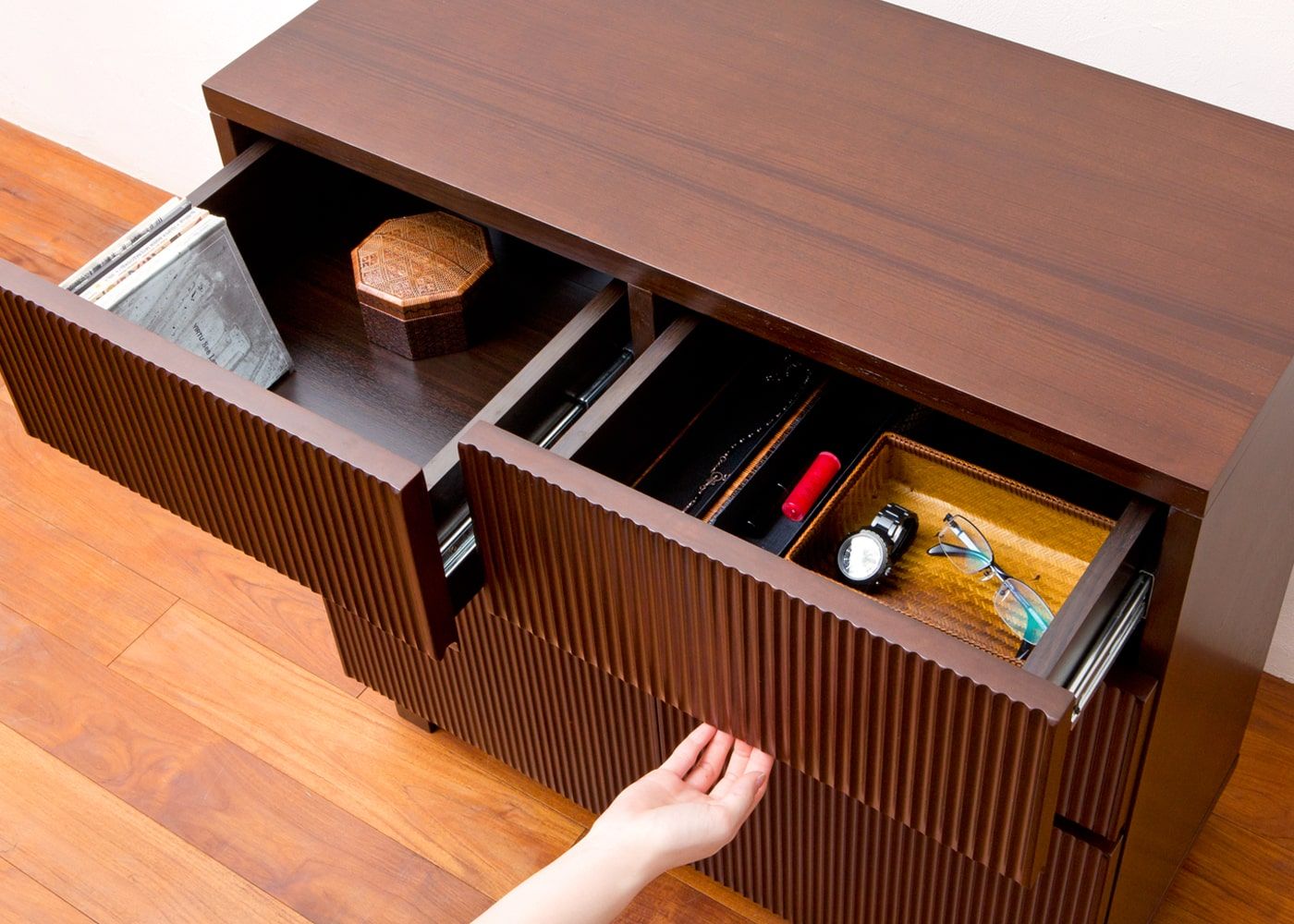 1段目、2段目の引出しは、小物類を仕分けしやすいサイズです。