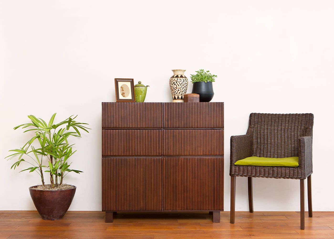 アジアらしい繊細で美しい縦の流れを「線と溝の連続性」で表現した「レン・シリーズ」のキャビネットです。まるで、アジアン・リゾートにいるような寛ぎの空間を演出してくれます。