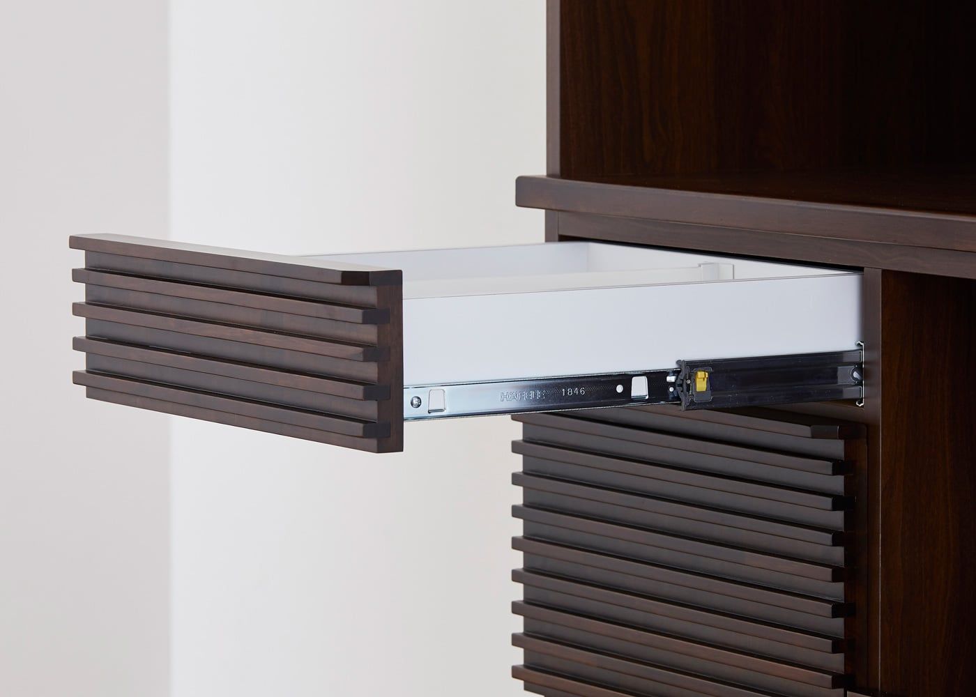 引き出し部分にもソフトクローズシステムを採用。閉まる際に減速して、少しづつ閉まります。