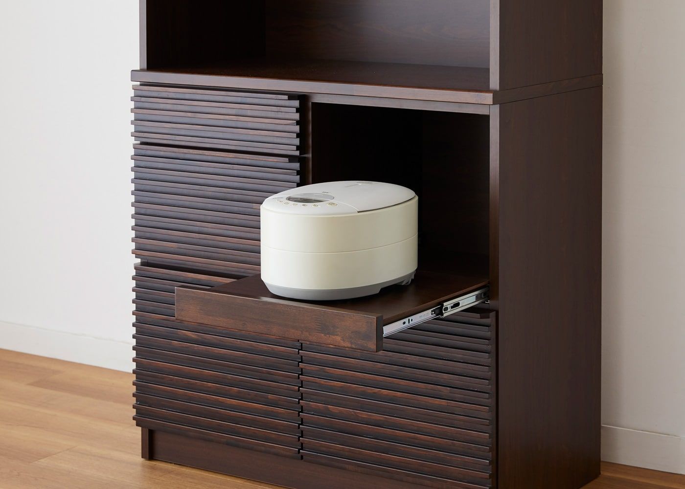 炊飯器やポットを格納できるスライド棚