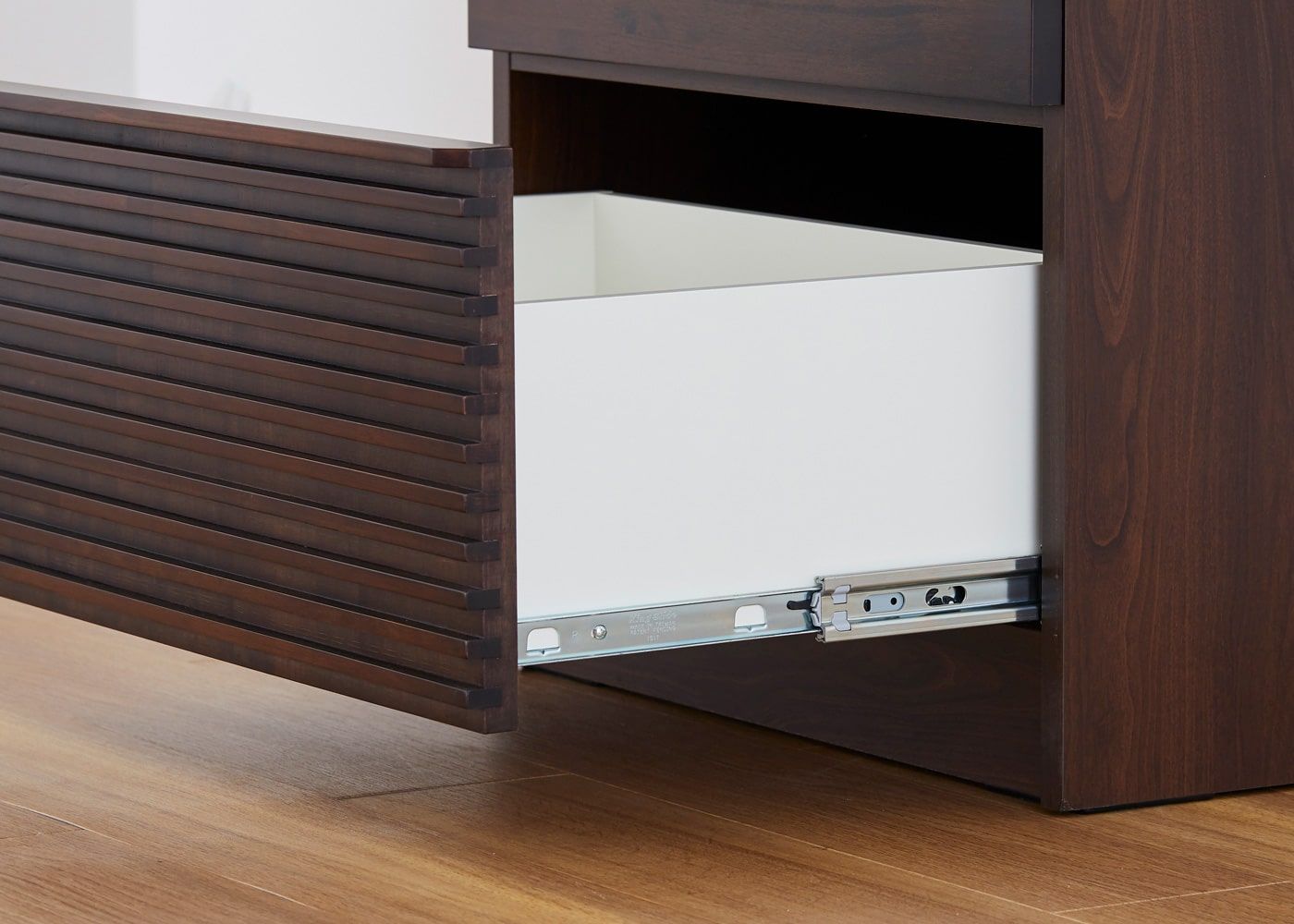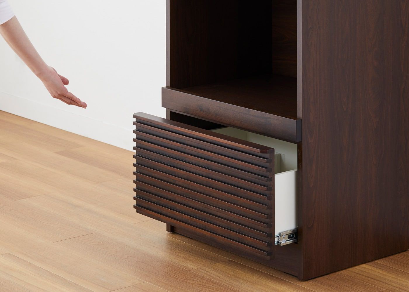 下段の引き出しにもソフトクローズシステムを採用。閉まる直前に減速して、静かにゆっくりと閉まります。