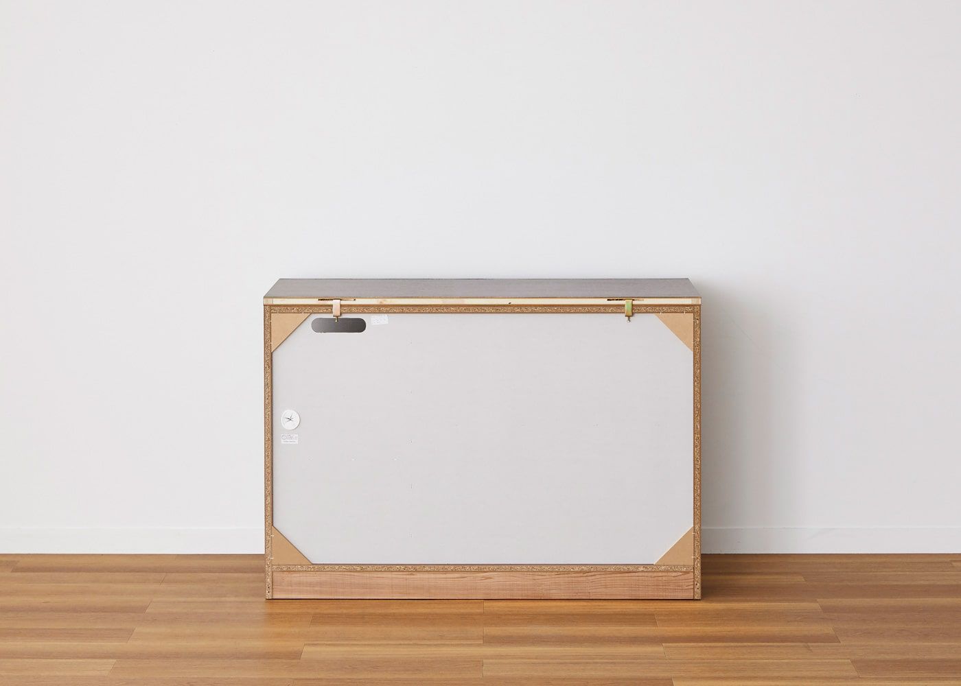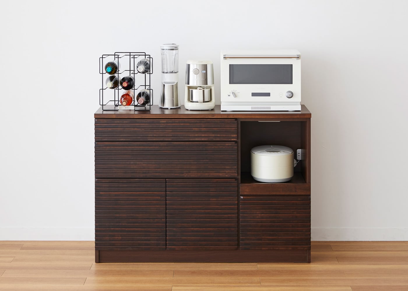 ルーバー・キッチンカウンターv02 1200はデザイン性だけでは無く、充実した収納力も魅力です。天板上のスペースには、電子レンジやコーヒーメーカー、ミキサーなどのキッチン家電を数点並べて配置できます。
