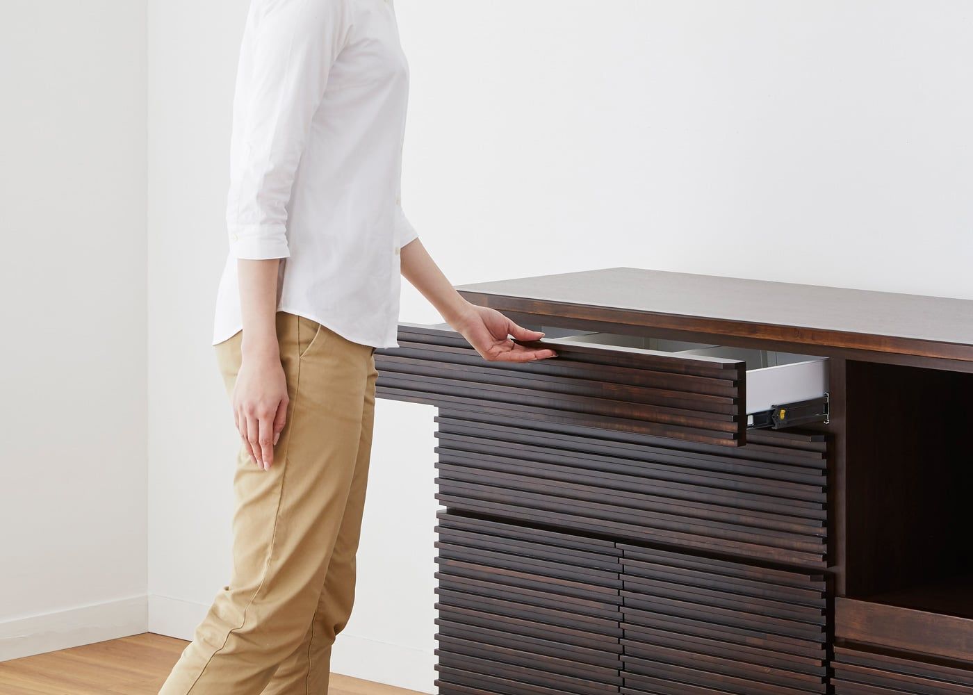 引き出しには、使い勝手を考えたソフトクローズシステムを採用。閉まる直前に減速して、静かにゆっくりと閉まります。