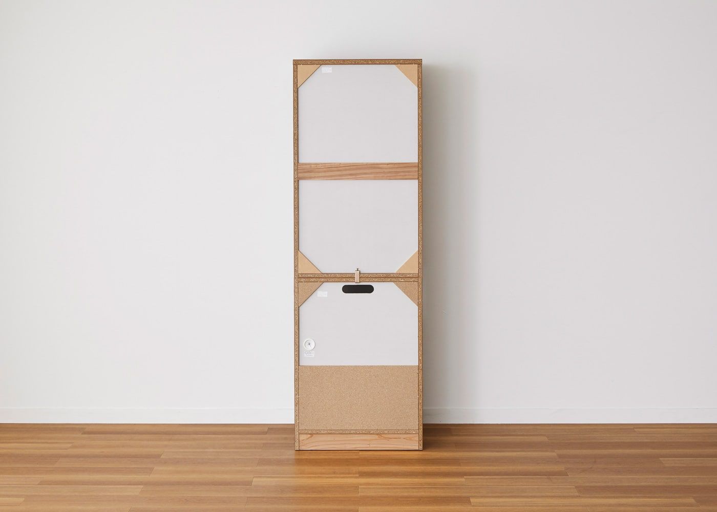 背面には過剰な加工や塗装をせず、エコな仕上げになっています。上段と下段はネジ止め+金具で固定します。