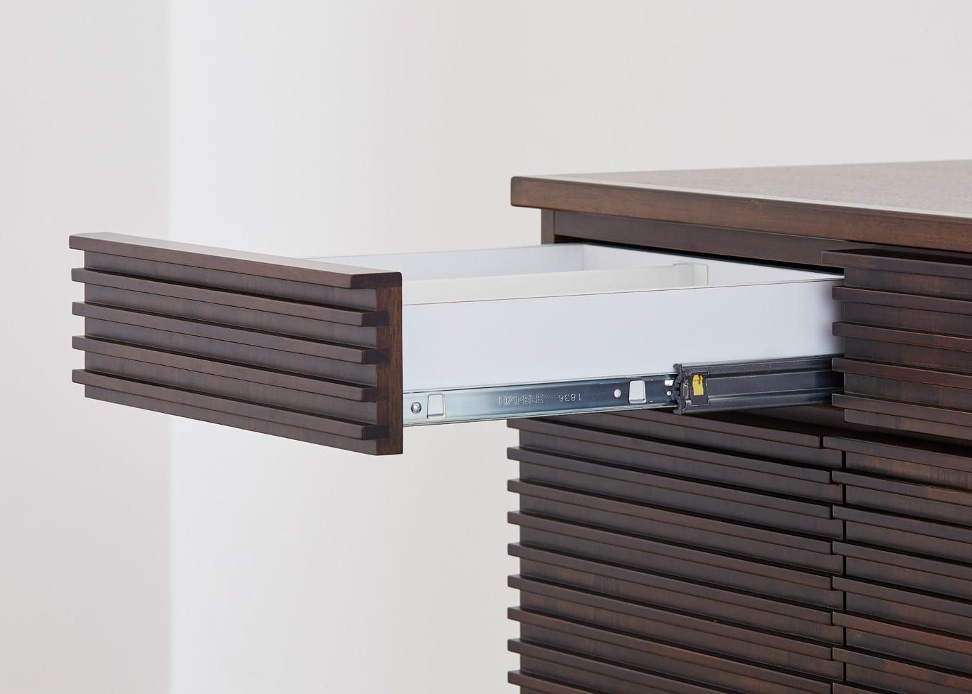 引き出しには、使い勝手を考えたソフトクローズシステムを採用。閉まる直前に減速して、静かにゆっくりと閉まります。
