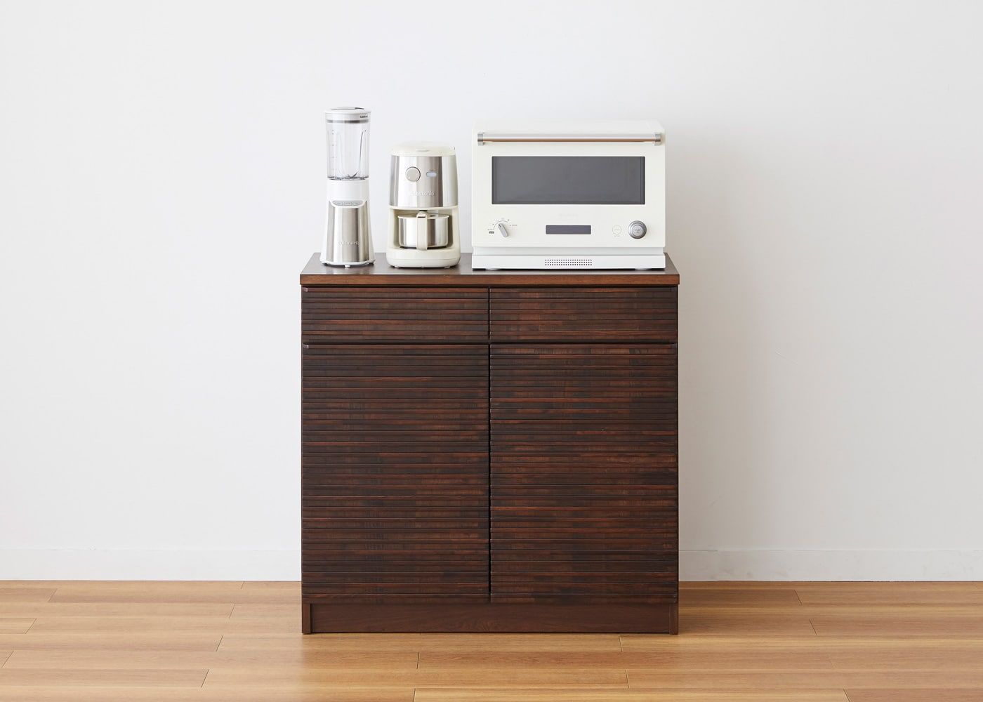 重厚感のあるダークブラウンと、無垢材を用いた水平ラインによって洗練感が漂います。収納力や機能性だけでは無く、デザイン性も求める方にお薦めです。