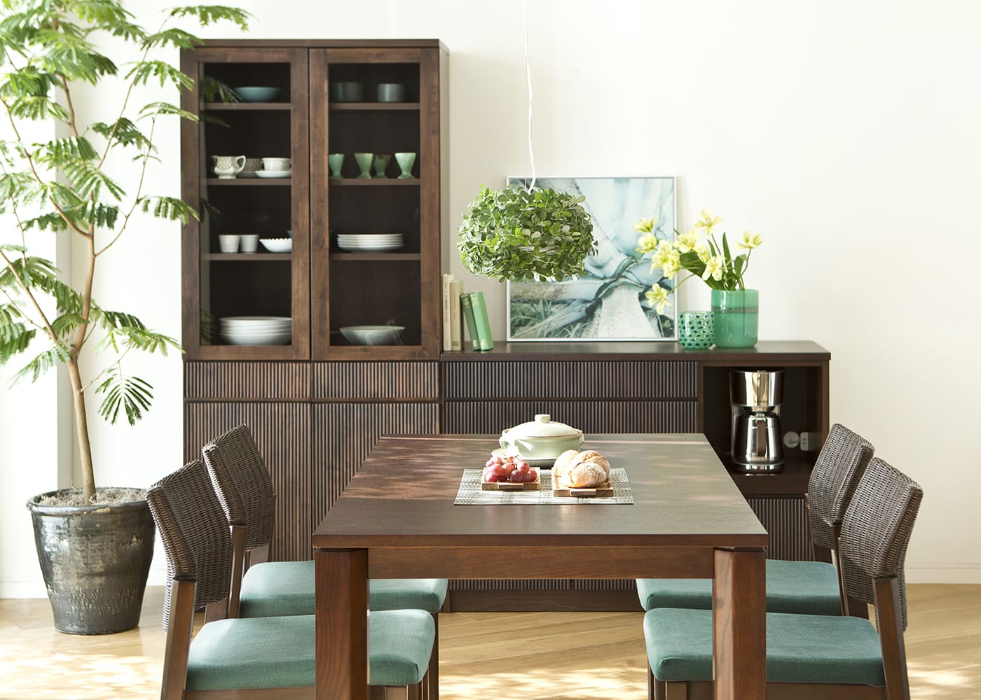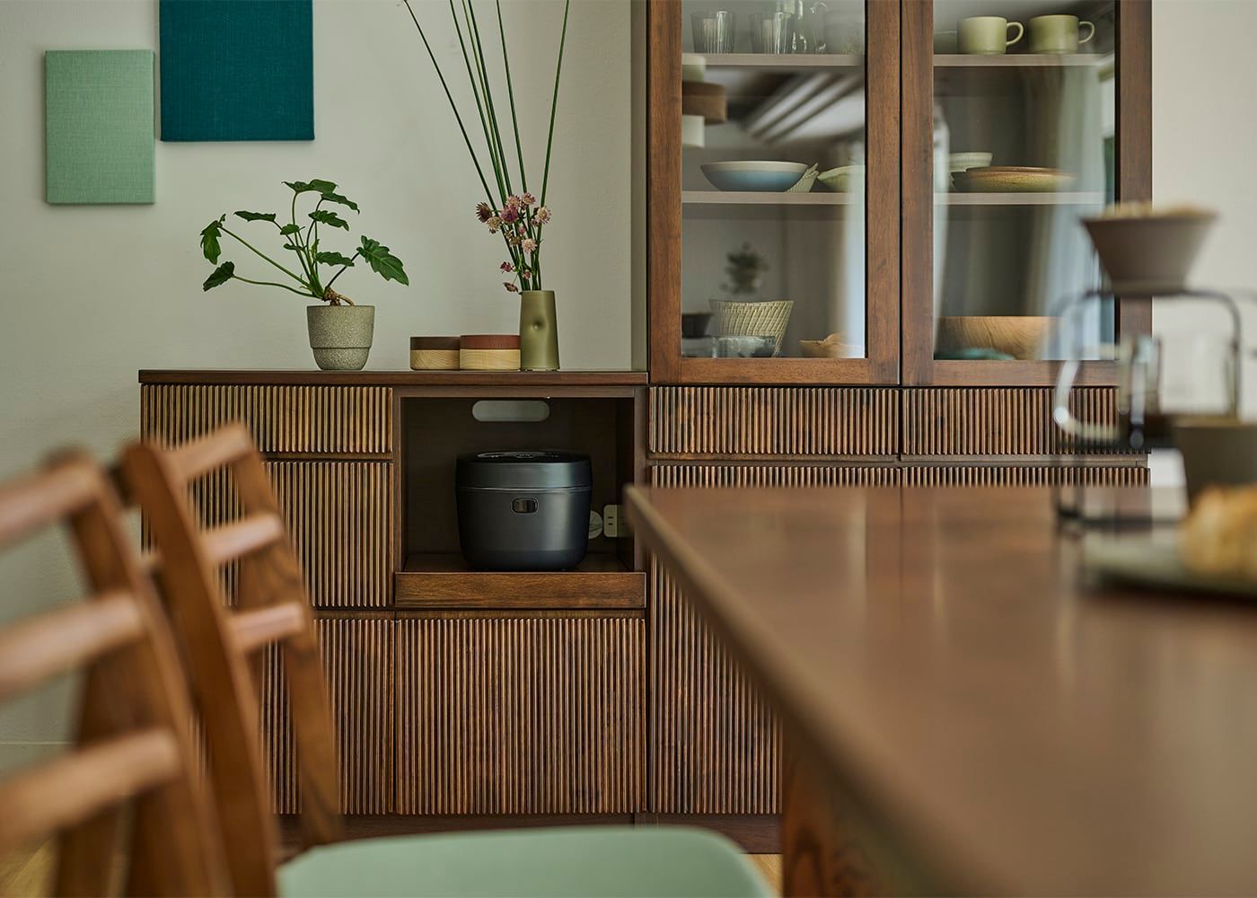 キッチンボードやキッチンカウンターなど同じルーバーシリーズのアイテムで揃えられるので、統一感のある洗練されたダイニングを演出できます。(※意匠権取得済)