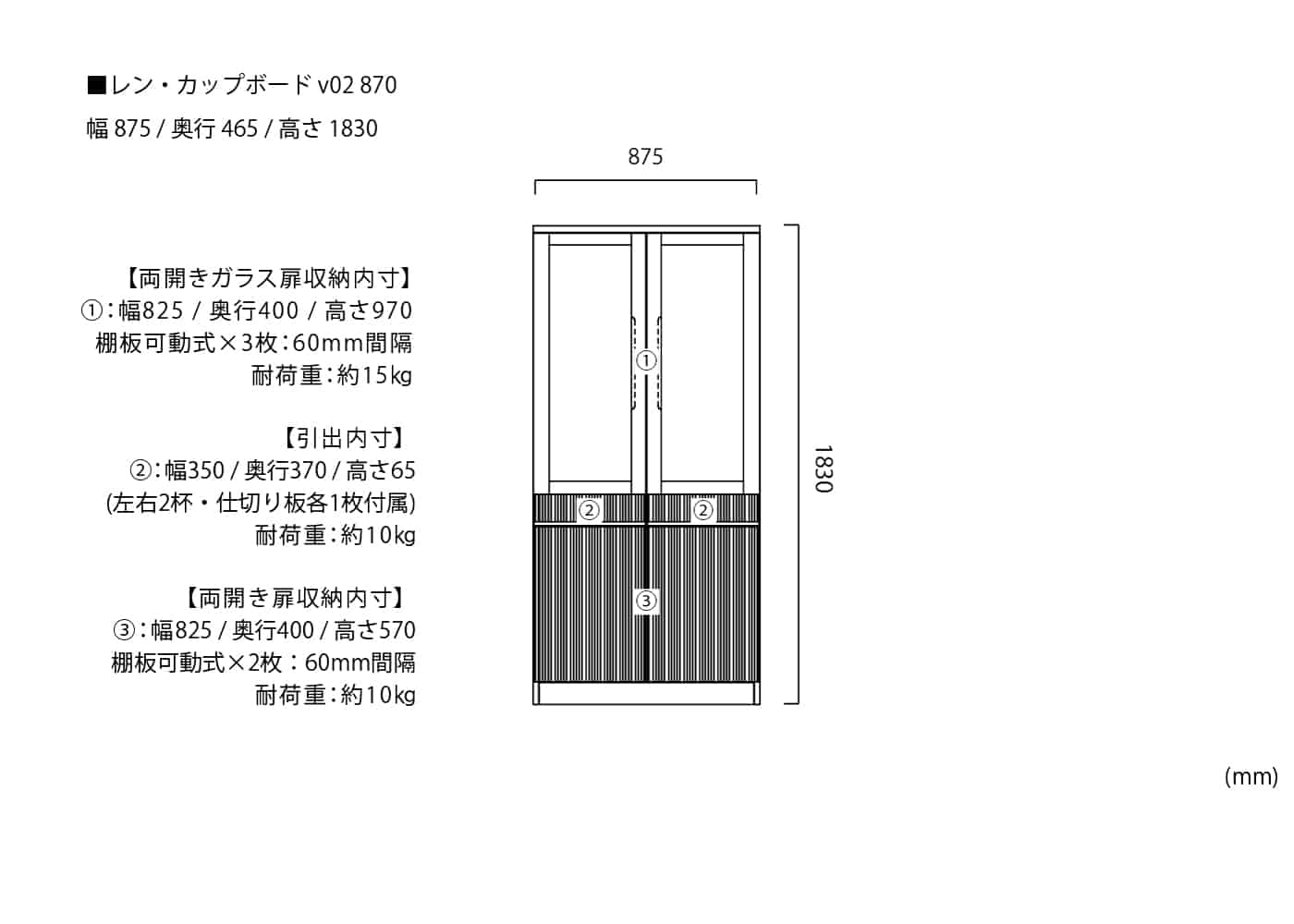 幅875 / 奥行465 / 高さ1830