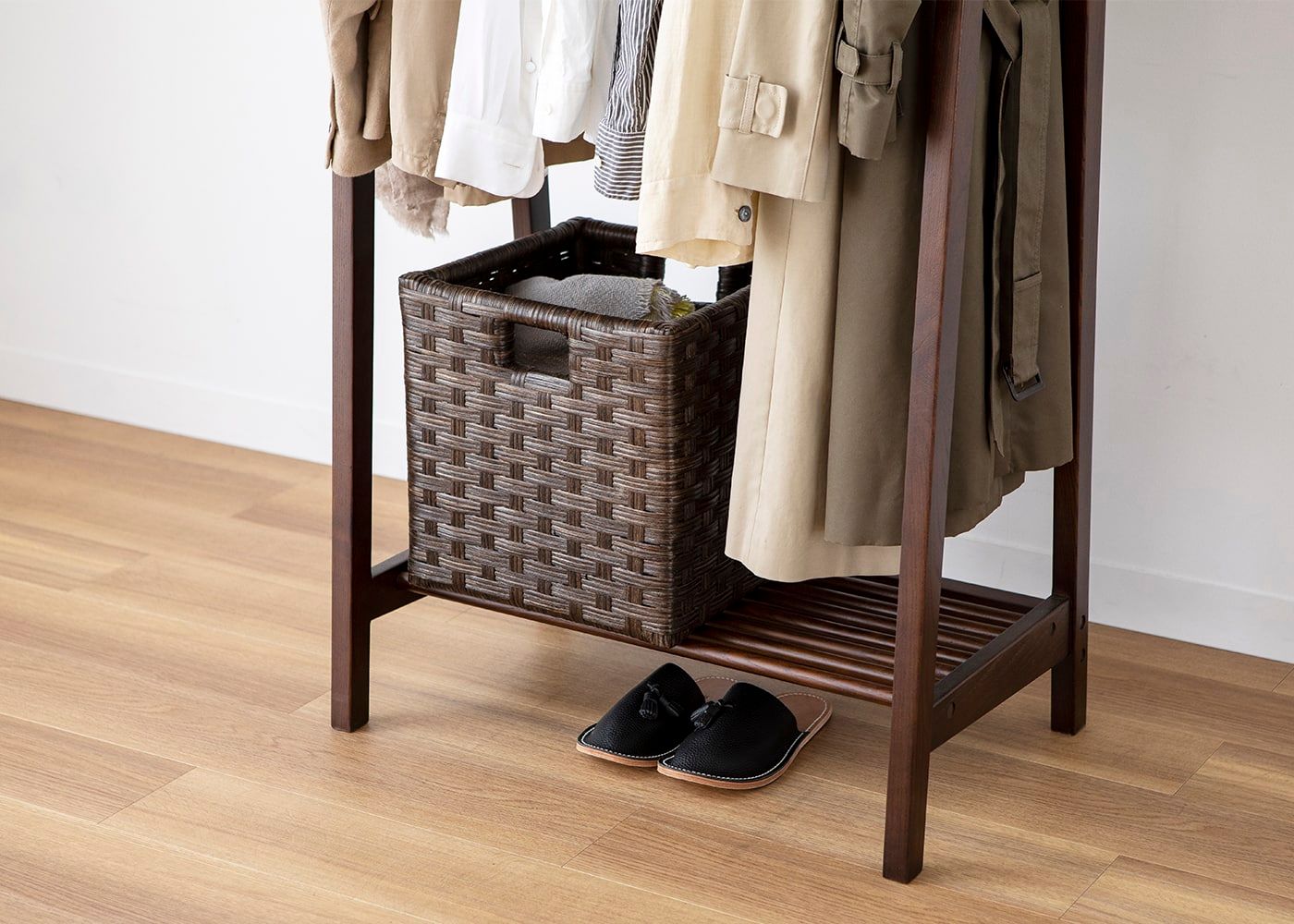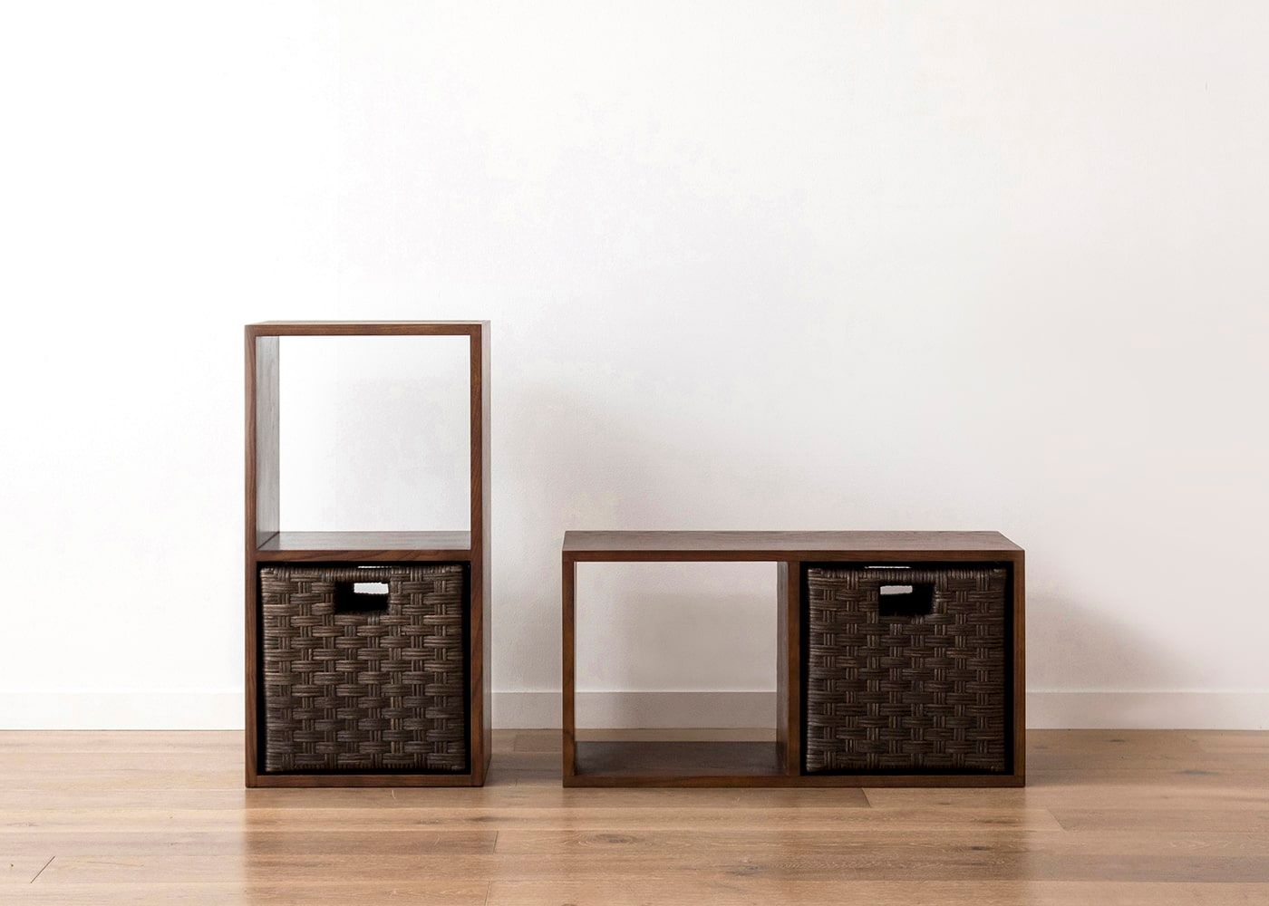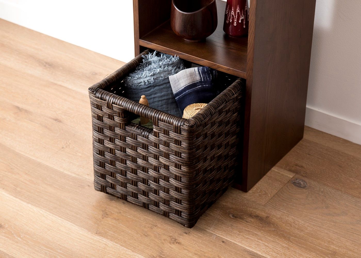 収納棚にドロワーを追加すると収納力があがるのはもちろん、ラタンの編み目そのものがデザインになった素材感が楽しめる収納棚に。ドロワーは棚部分に差し込むだけの簡単な構造なので、好きな位置にドロワーを入れることができます。(収納棚は別売り、写真は一例です)