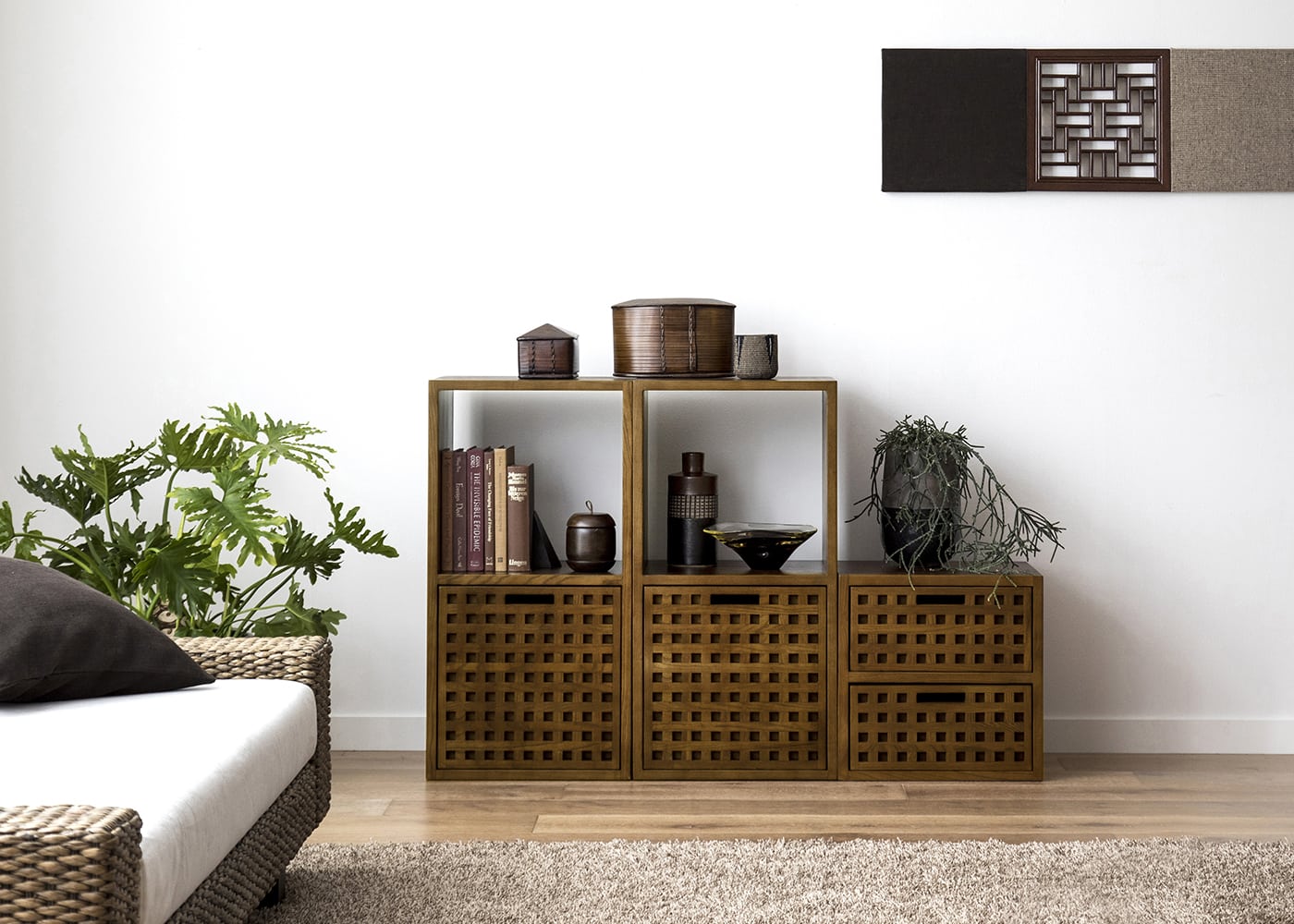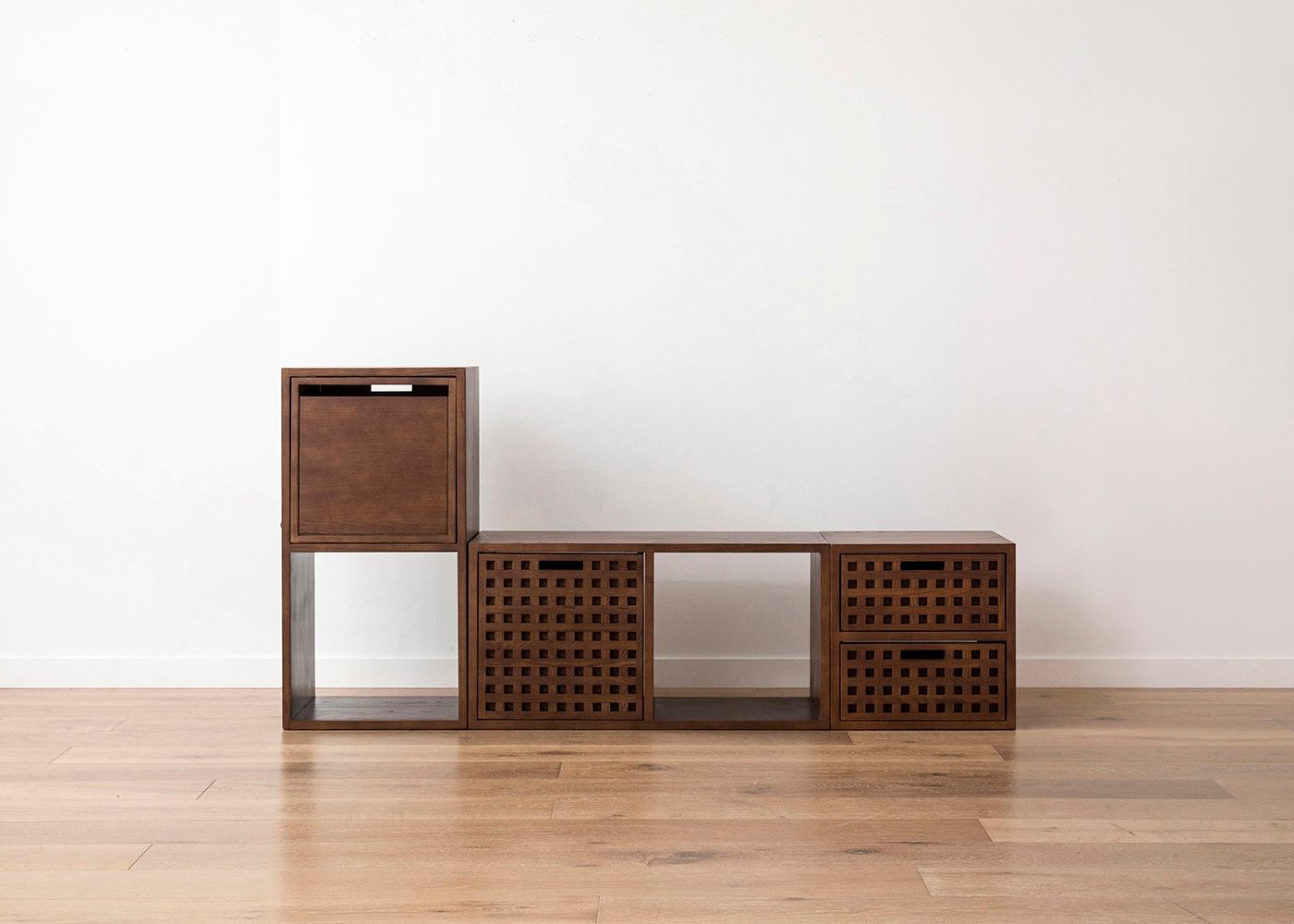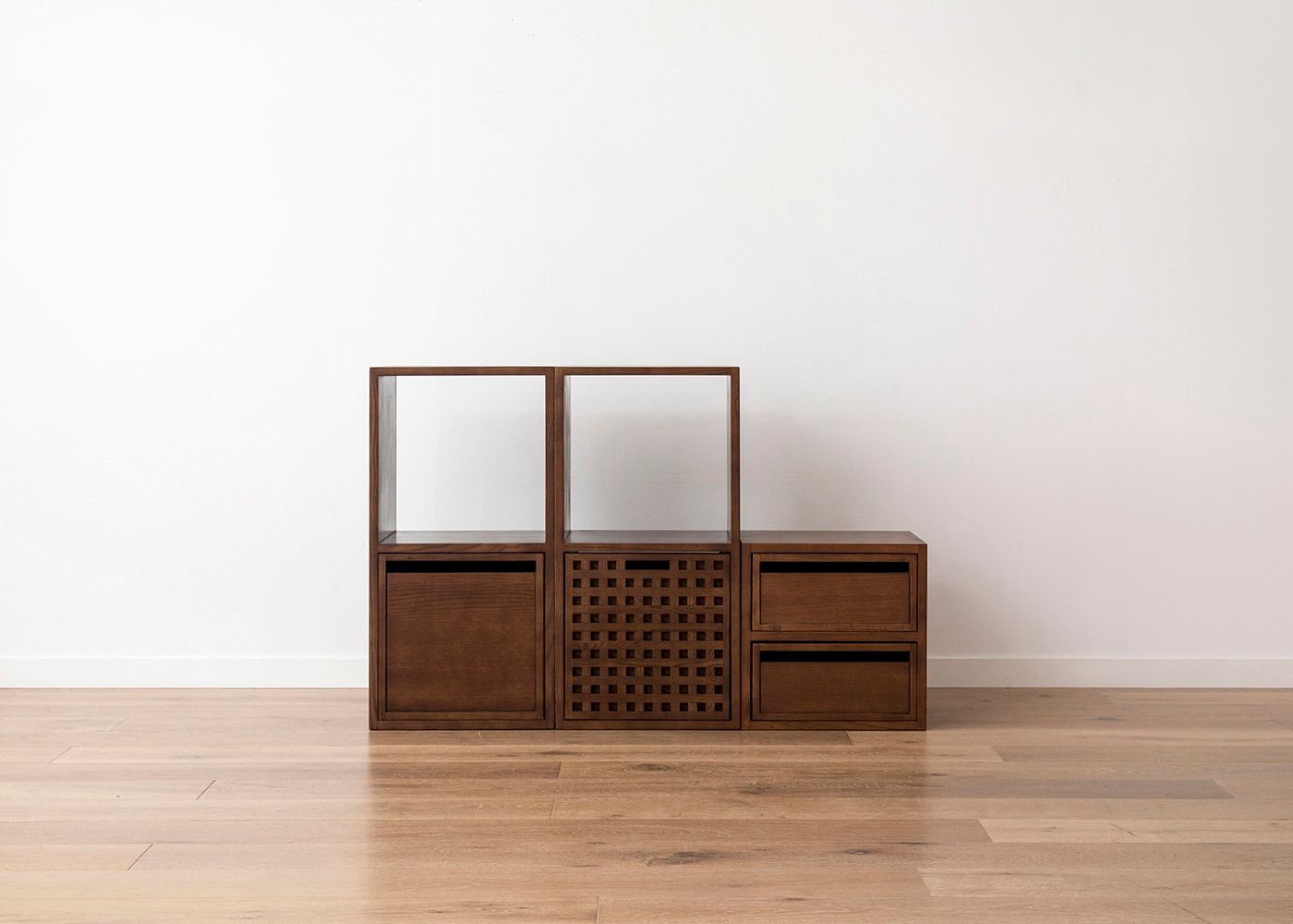サイズ詳細はこちらこのセットを組み替えるだけで、用途や間取りに合わせた自分だけの収納棚が作れます。統一されたモジュールにより、組み替え方次第でサイズとデザインも自由自在。ライフスタイルに合わせてサイズとデザインを自由に変えて長く使い続けられる収納棚セットです。