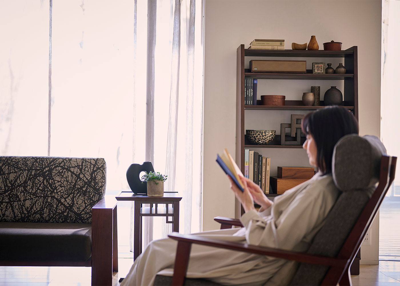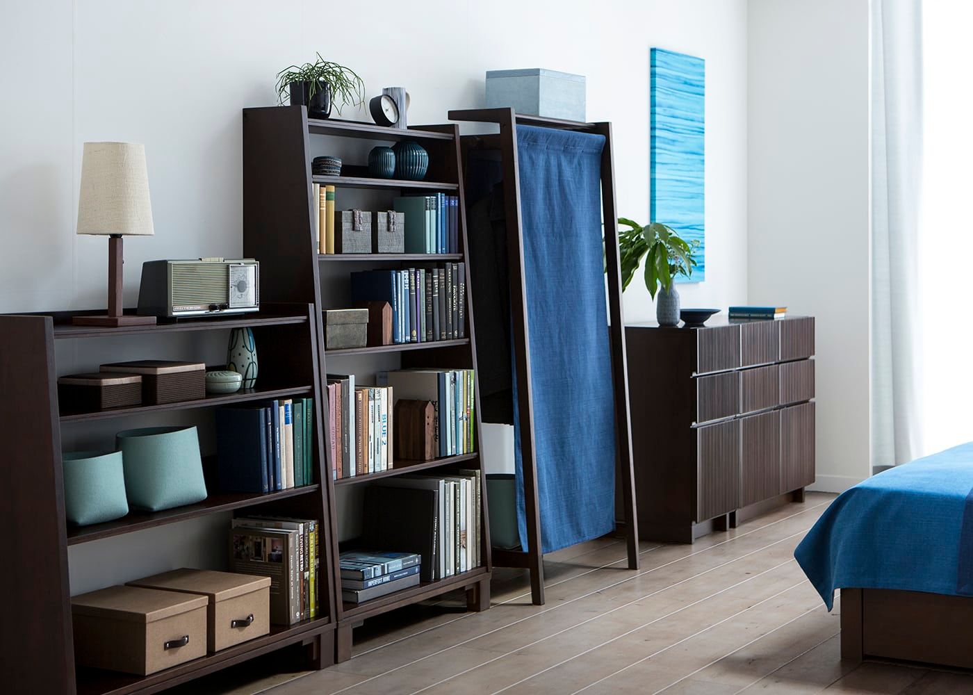 ブックシェルフのコンパクトな奥行きは、お部屋の動線をしっかり確保したり、空間を広く見せることに一役買ってくれます。