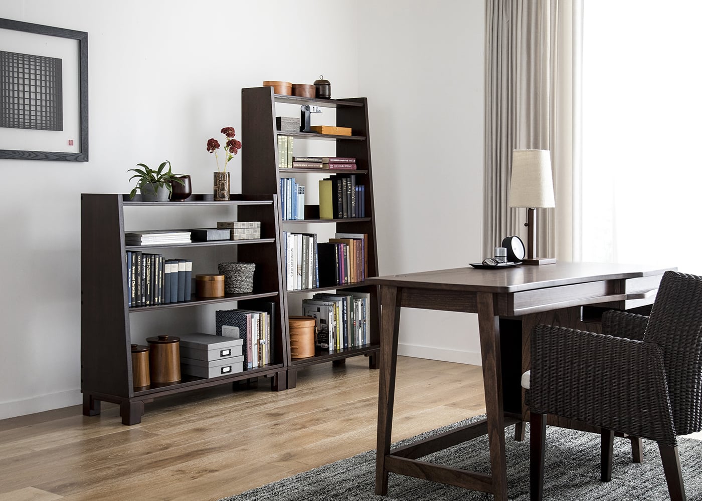 シンプルなフォルムの中にも、a.flatらしいモダンアジアンデザインを追求しました。高さを出して収納力を確保しながらもコンパクトな幅の置き易い本棚です。