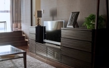背面も無垢材を使用し、後ろから見ても美しいデザインに仕上げました。壁付けだけでなく部屋の中央にもレイアウトできます。