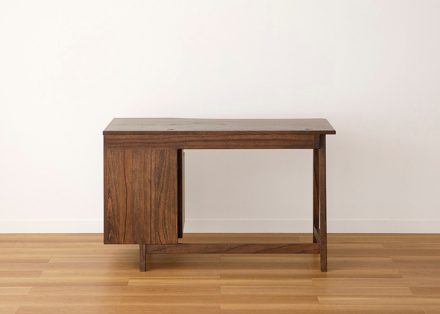 天板をはじめ、脚や引出前板や取っ手などにもインダカ無垢材を贅沢に使用したワーク・デスクv02。