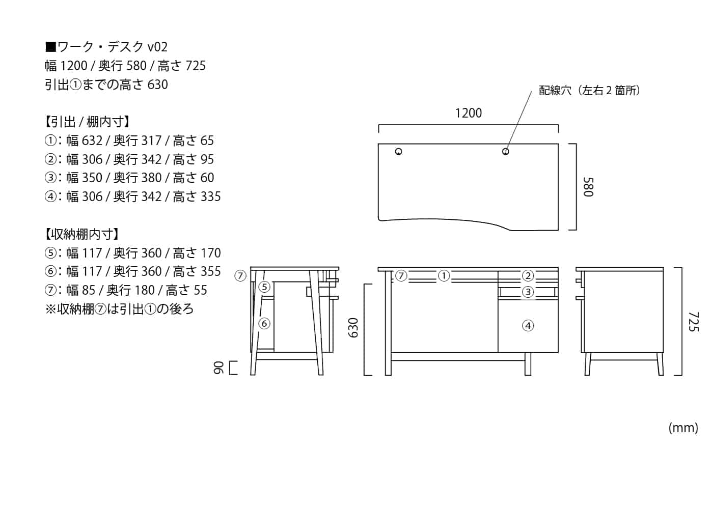 幅1200 / 奥行580 / 高さ725 ※単位は mm