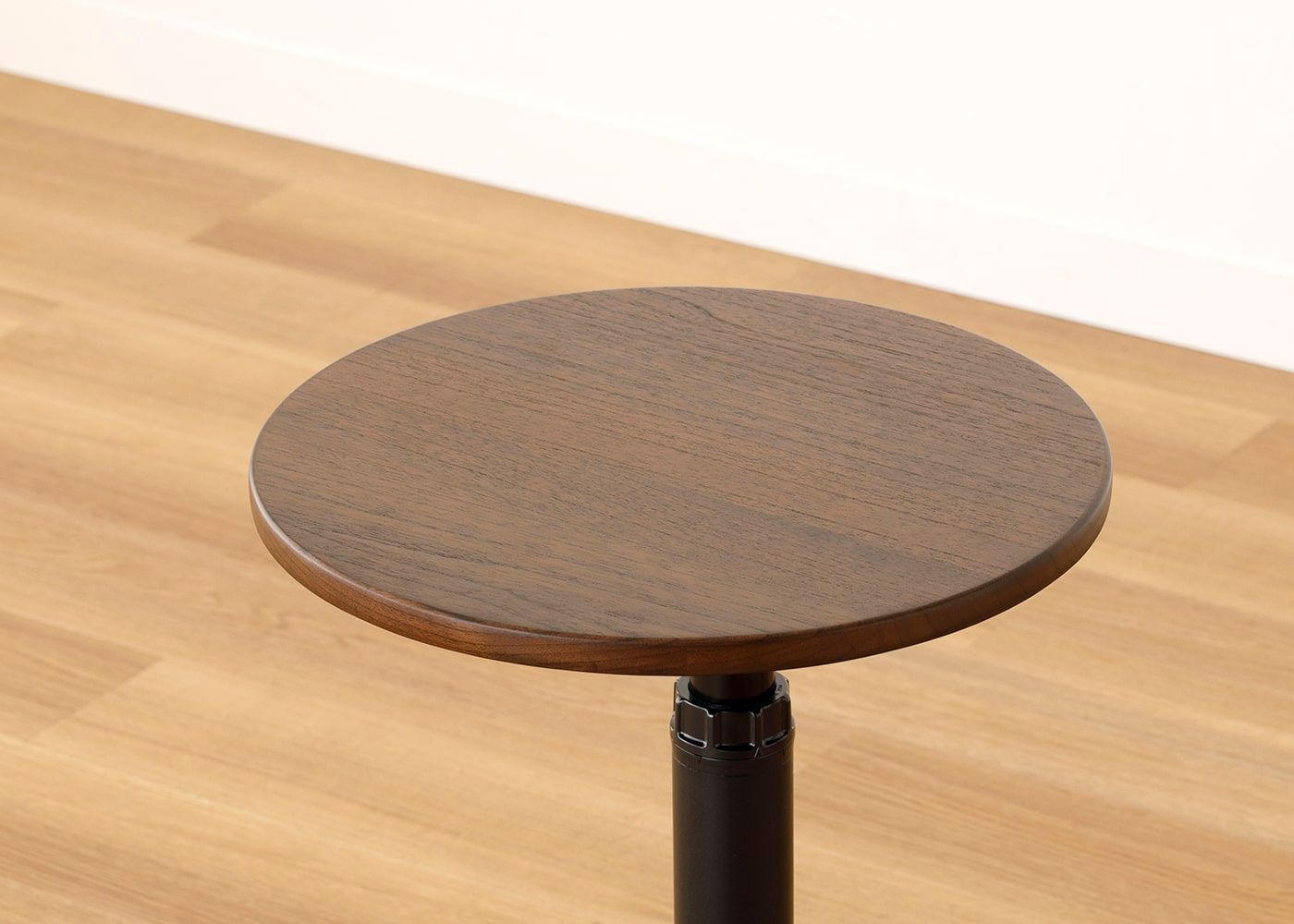 円形天板は直径41cmで、コップや本などを置くのにちょうど良いサイズ感。使うたびに無垢材ならでは個性豊かな木目や木肌の質感が味わえます。